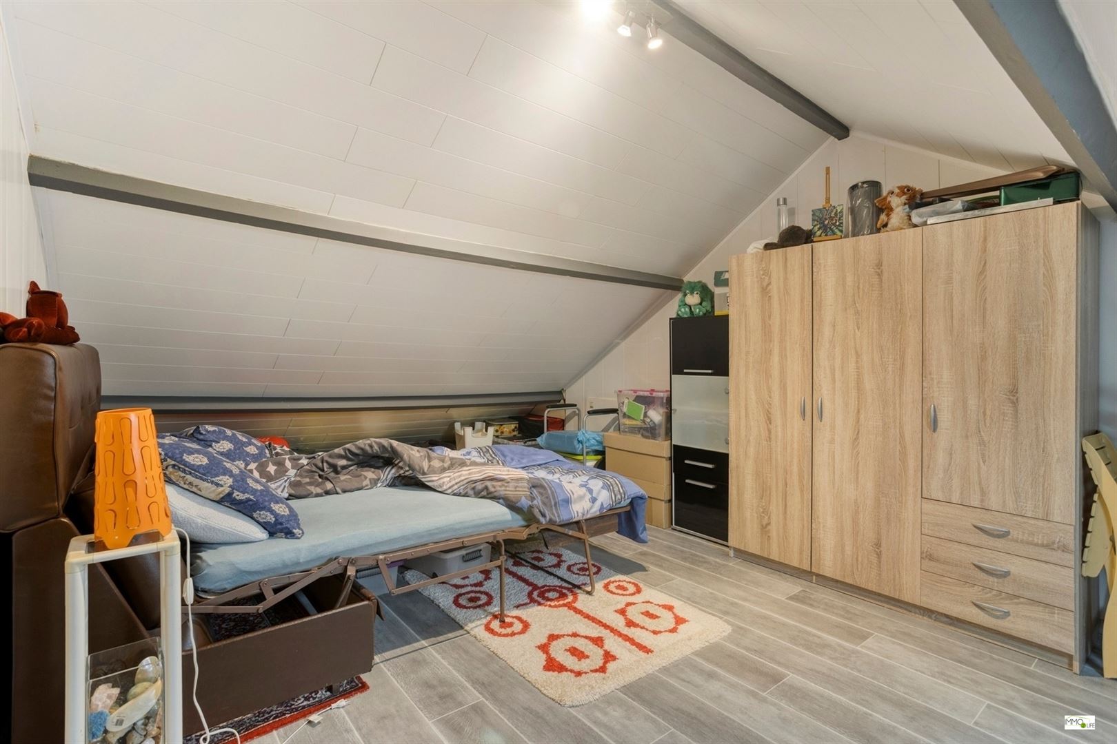 Zolderverdieping: 3de ruime slaapkamer of polyvalente ruimte, bereikbaar via een vaste trap.