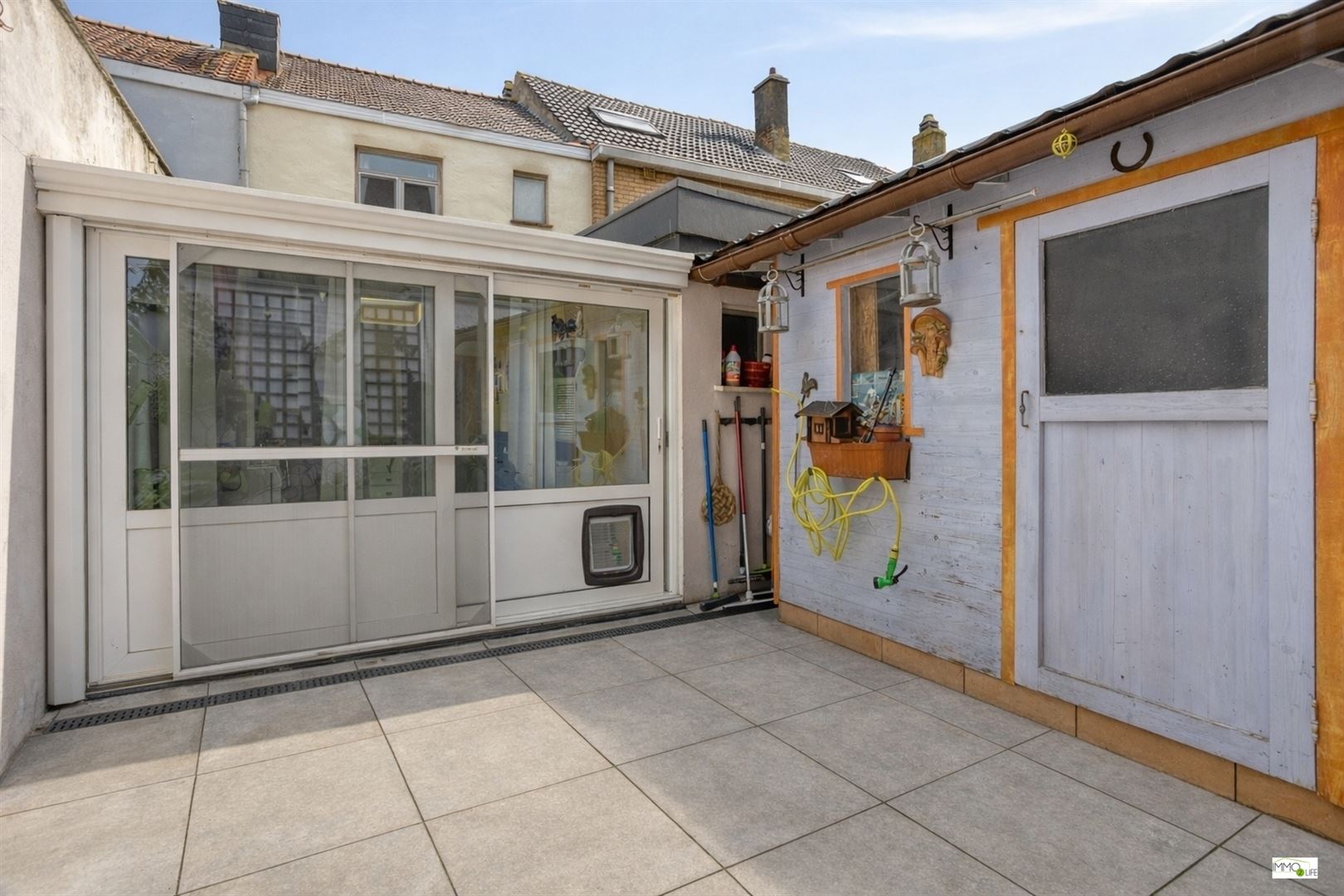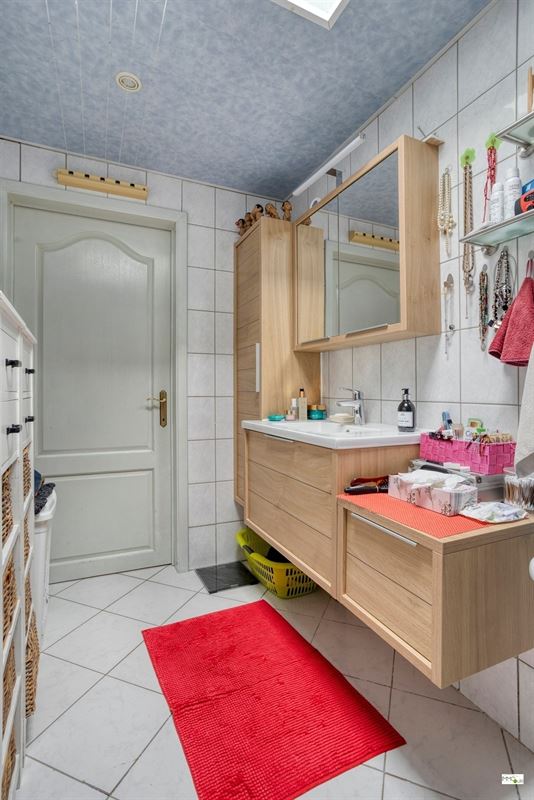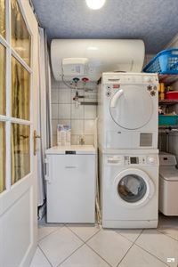 Gelijkvloers: inkomhal, berging onder de trap, gezellige woonkamer met eetplaats en trap naar de 1ste verdieping, ruime keuken met lichtkoepel, veranda en toegang tot de aangename koer/terras, wasruimte met aansluitende badkamer voorzien van alle comfort (inloopdouche, wastafel, toilet en handdoekradiator). Op de koer bevindt zich eveneens nog een praktische berging/tuinhuis.