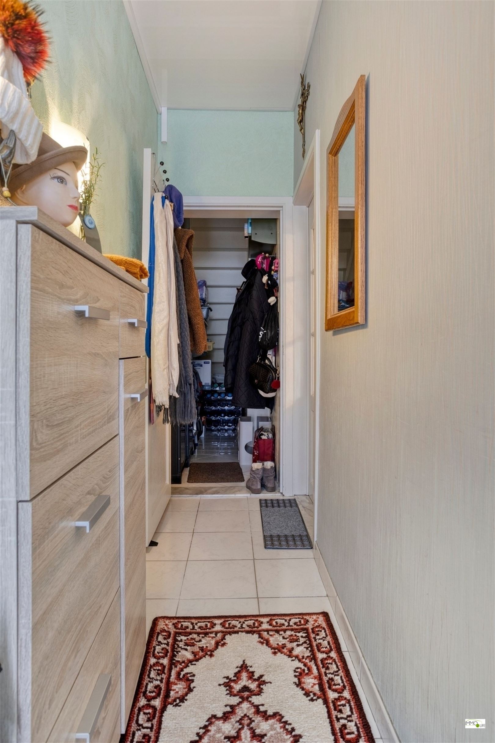 1ste verdieping: nachthal, 1ste ruime slaapkamer aan de straatzijde en 2de slaapkamer aan de achtergevel met ingemaakte kasten.