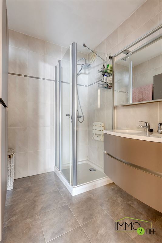 De indeling is als volgt: inkomhal, apart toilet, lichtrijke woon- en eetkamer, ingerichte keuken met toegang tot het terras, ingerichte badkamer met douche en wastafel, 2 ruime slaapkamers en een berging (met mogelijkheid tot 3de slaapkamer). Op de gelijkvloerse verdieping bevindt zich een trap naar de privatieve kelder, waar u beschikt over extra bergruimte. Daarnaast is er een privatieve garagebox voorzien, gelegen vlak achter het appartementsgebouw.