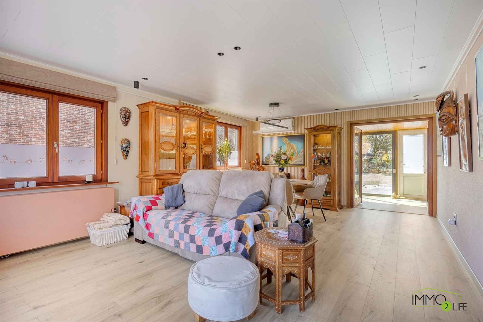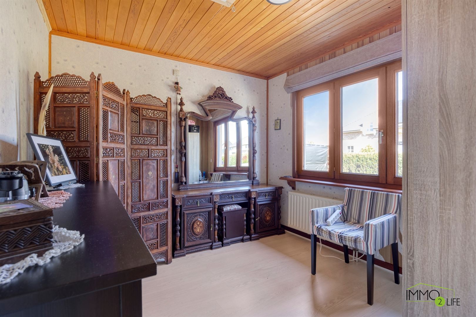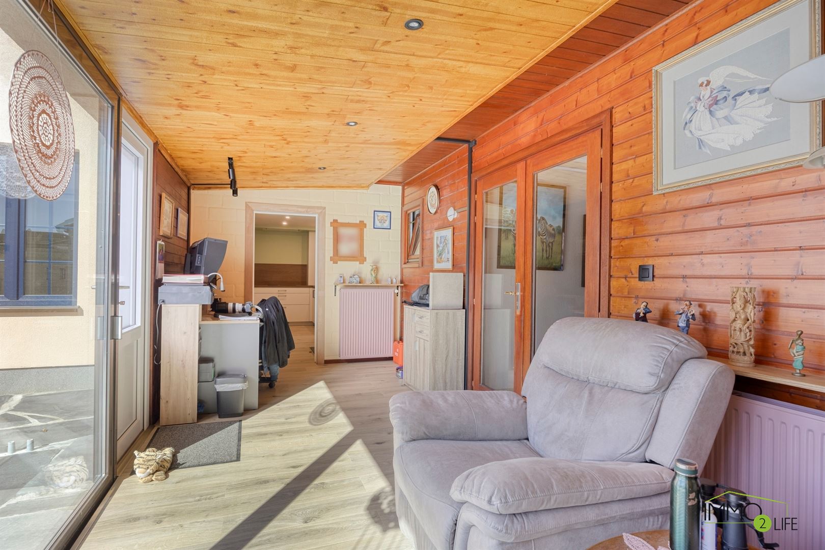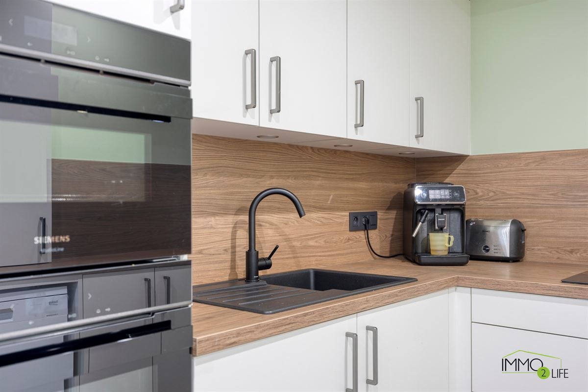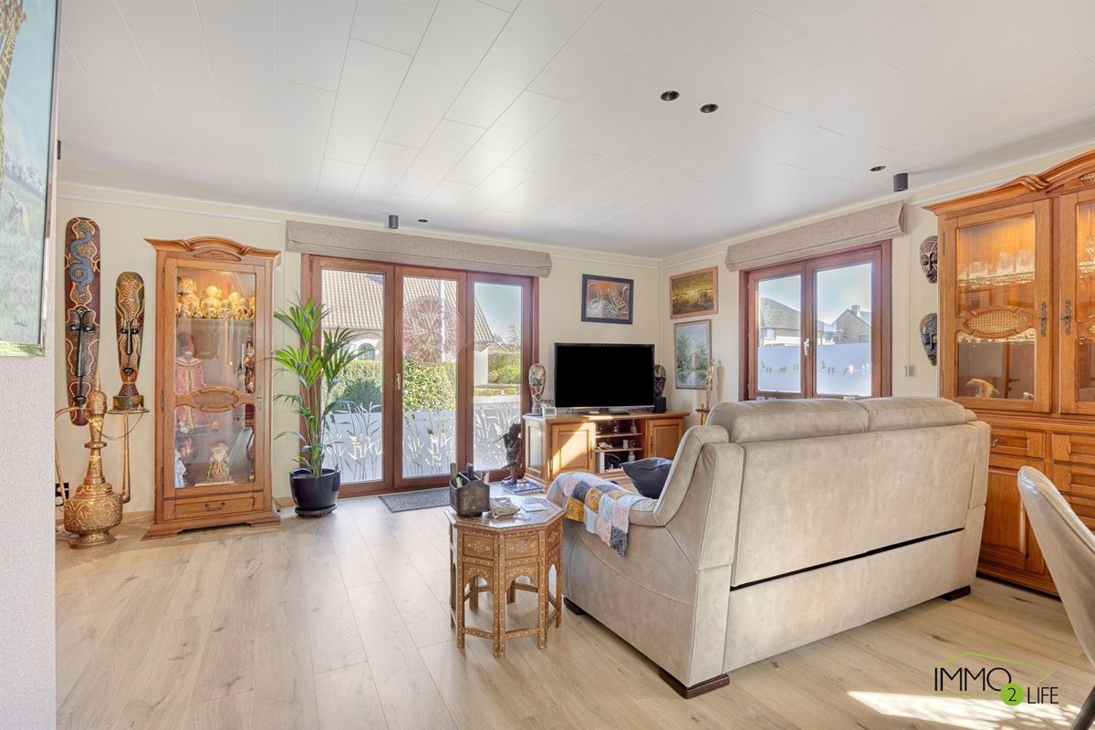 De woning verwelkomt u via een verzorgde inkomhal en biedt een lichtrijke, ruime woon- en eetkamer met directe toegang tot de westgeoriënteerde veranda, waar u geniet van een prachtig zicht op de tuin. Aansluitend bevindt zich de volledig ingebouwde keuken, uitgerust met kwalitatieve toestellen. Verder beschikt de woning over een praktische wasruimte met maatkasten en discreet weggewerkte toestellen, met toegang tot zowel de garage als de tuin met vijver en de aanpalende carport. De badkamer is voorzien van een douche, toilet en wastafel en sluit aan op de master bedroom. Daarnaast bevindt zich naast de inkomhal een 2de volwaardige slaapkamer, die eveneens toegang biedt tot de zolderruimte.