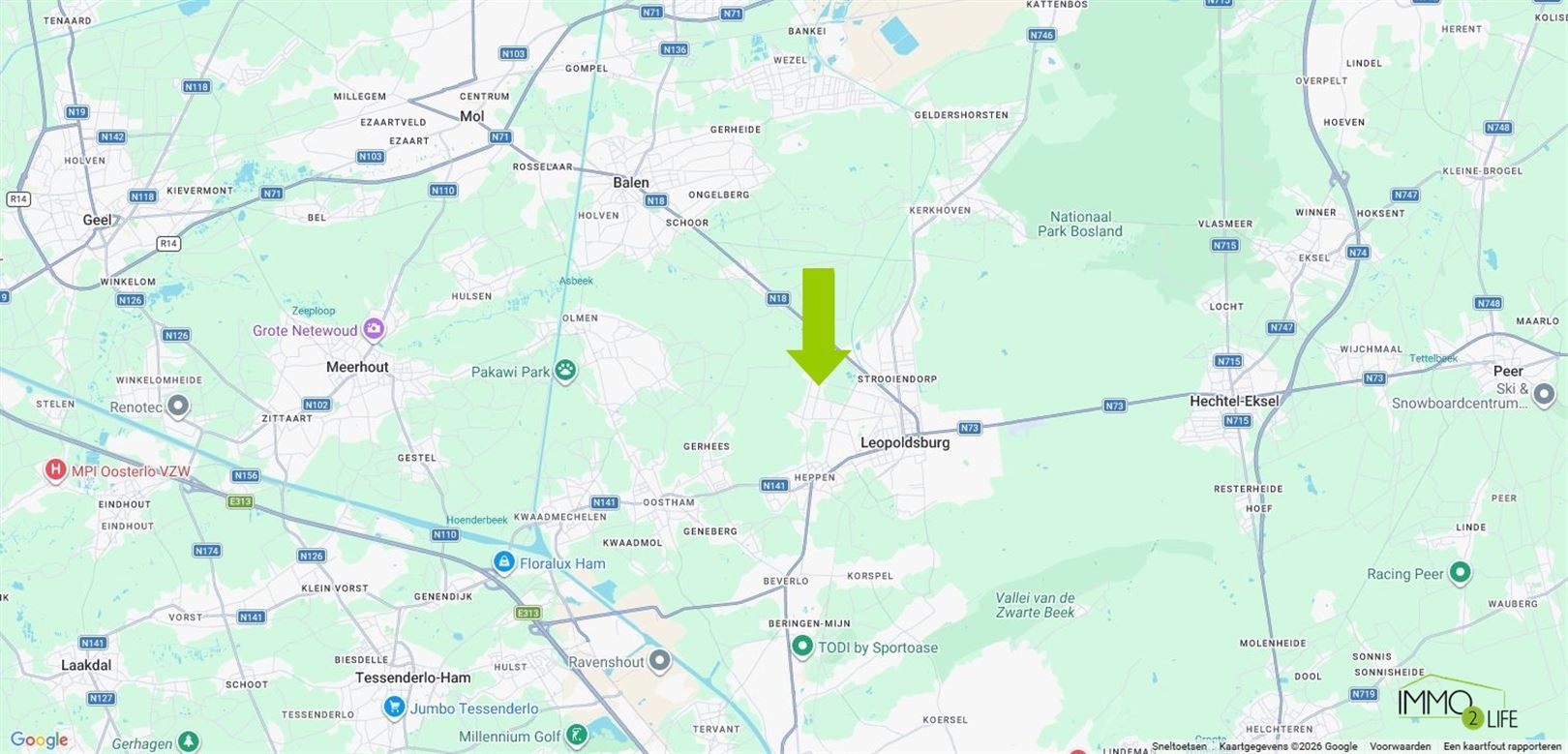 Het betreft een recent gerenoveerde, vrijstaande woning, gelegen op een perceel van 918 m² in het landelijke Heppen, deelgemeente van Leopoldsburg. De woning beschikt over een private oprit met elektrische toegangspoort, een carport en een ruime, onderhoudsvriendelijke en verzorgde tuin met vijver. Deze woning is gelegen vlakbij het centrum van Leopoldsburg (2,5 km) en in de nabijheid van invalswegen (N18 en N73) en voorzieningen zoals winkels, scholen, restaurants en openbaar vervoer (bus 500 m, trein 2,7 km). Hier geniet men van een perfecte combinatie van rust en vlotte bereikbaarheid.