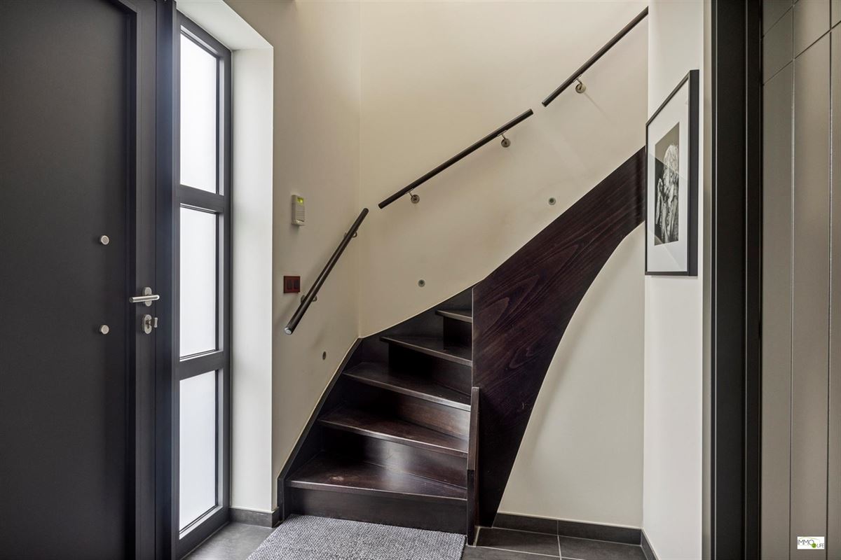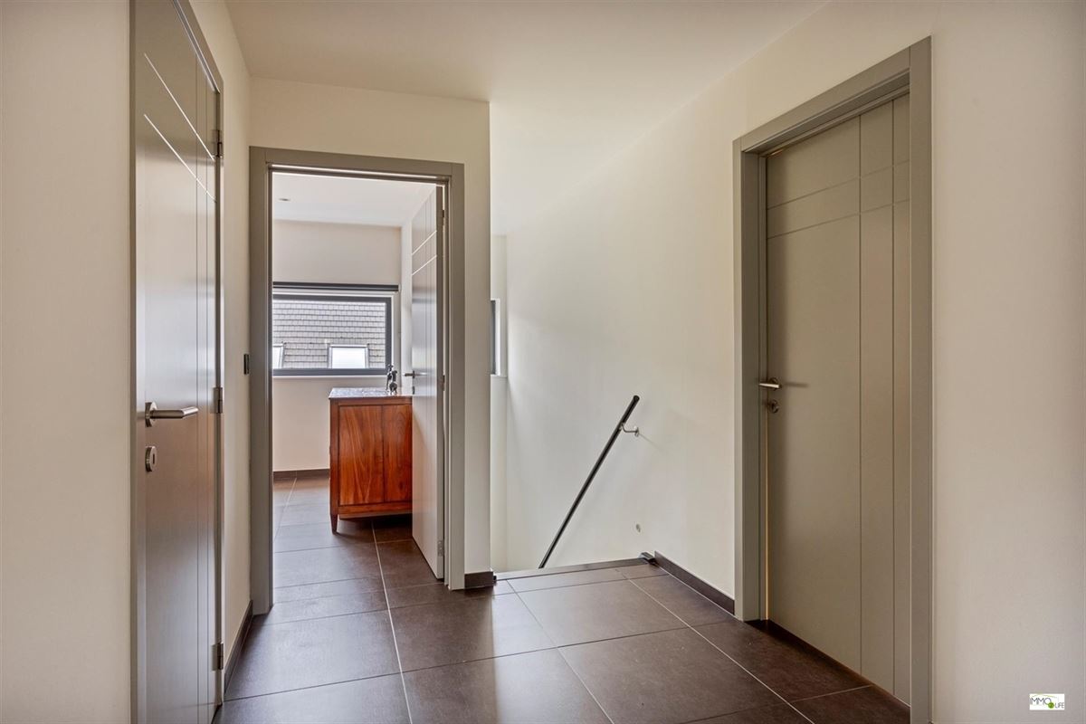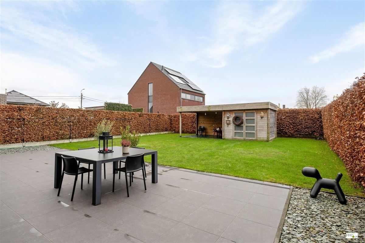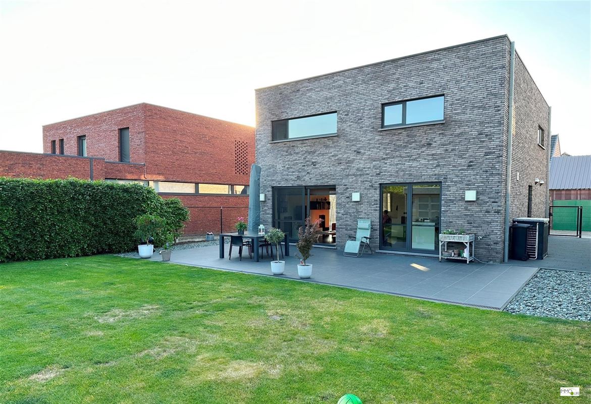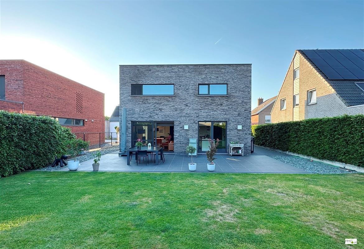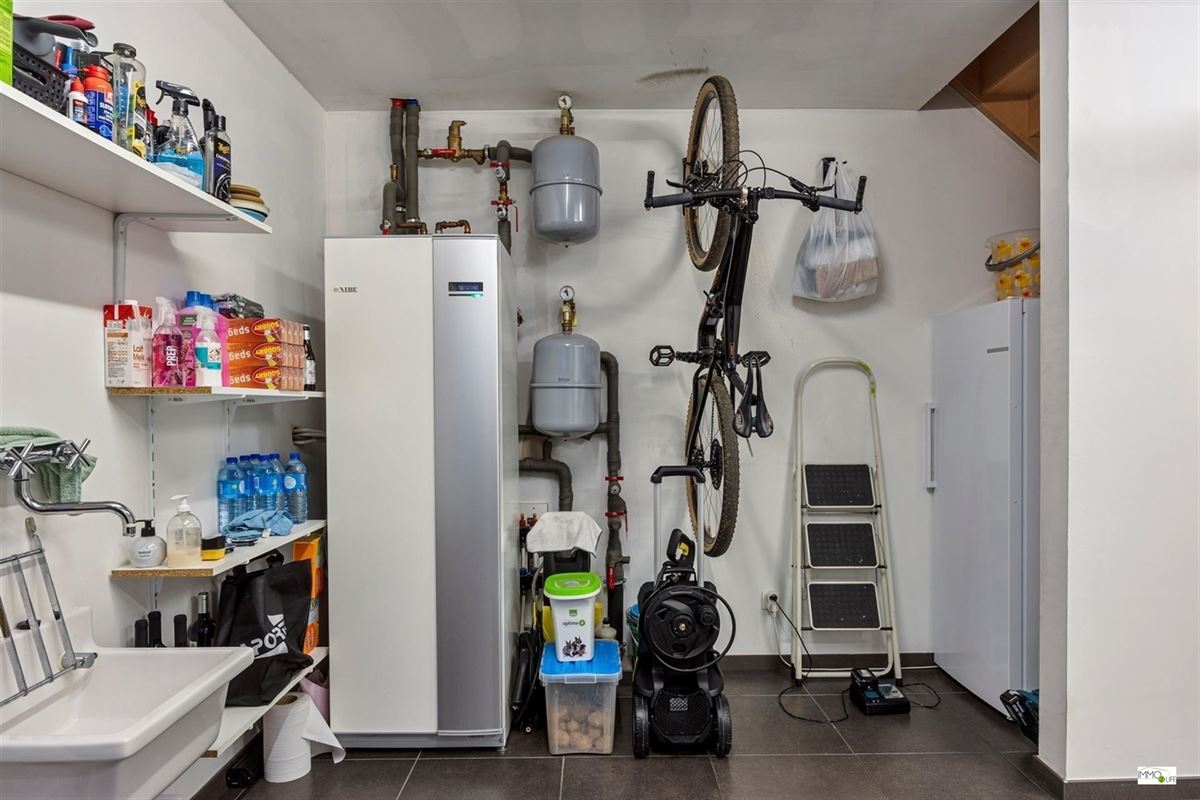 De indeling is als volgt: inkomhal met apart toilet, lichtrijke woon- en eetkamer (32,9m²) met toegang tot het terras en de tuin, ingerichte open keuken (18,8m²) met kwaliteitsvolle toestellen en toegang tot het terras en de tuin, en inpandige garage (22,7m²). Op de 1ste verdieping bevindt zich de nachthal, 3 slaapkamers (20m² - 15m² - 12,2m²), linnenkamer/wasplaats (6,5m²) en een ingerichte badkamer (16,5m²) met douche, ligbad, toilet en dubbele wastafel. Buiten bevindt zich het terras met de onderhoudsvriendelijke tuin.