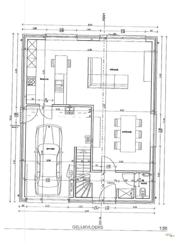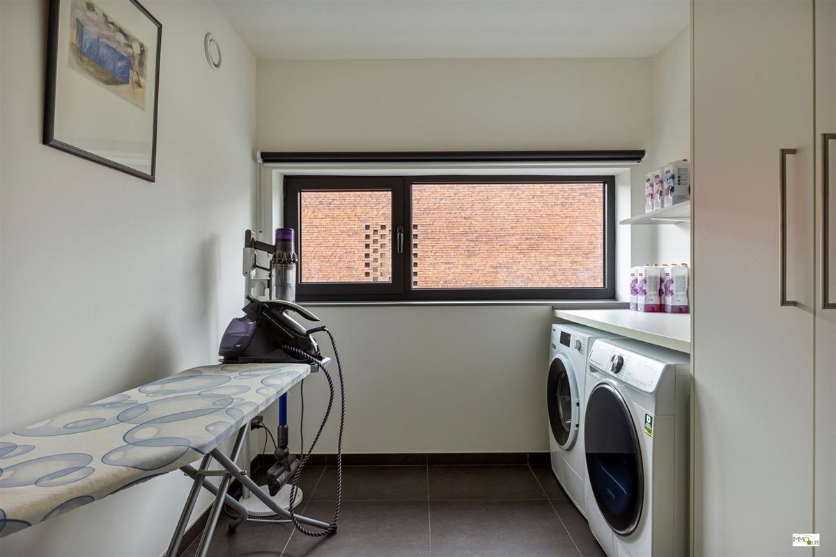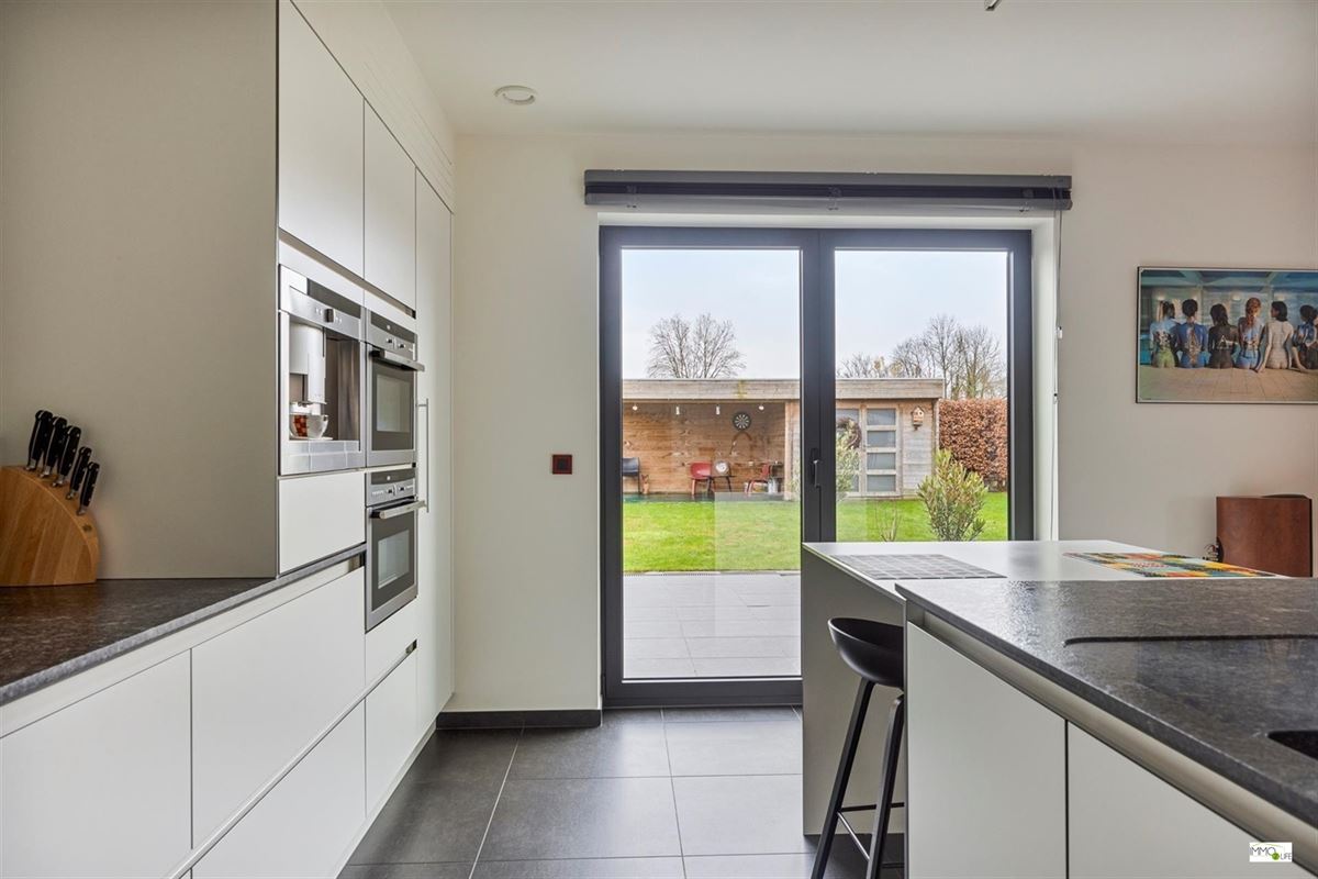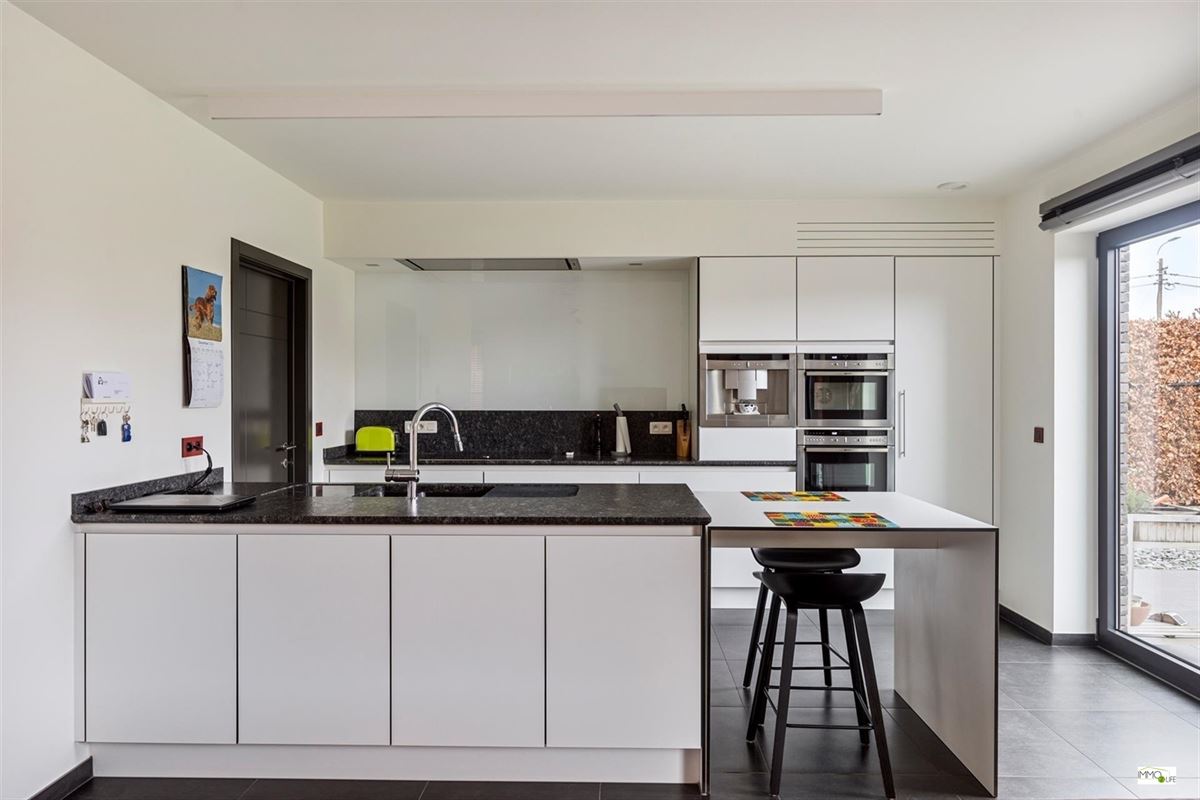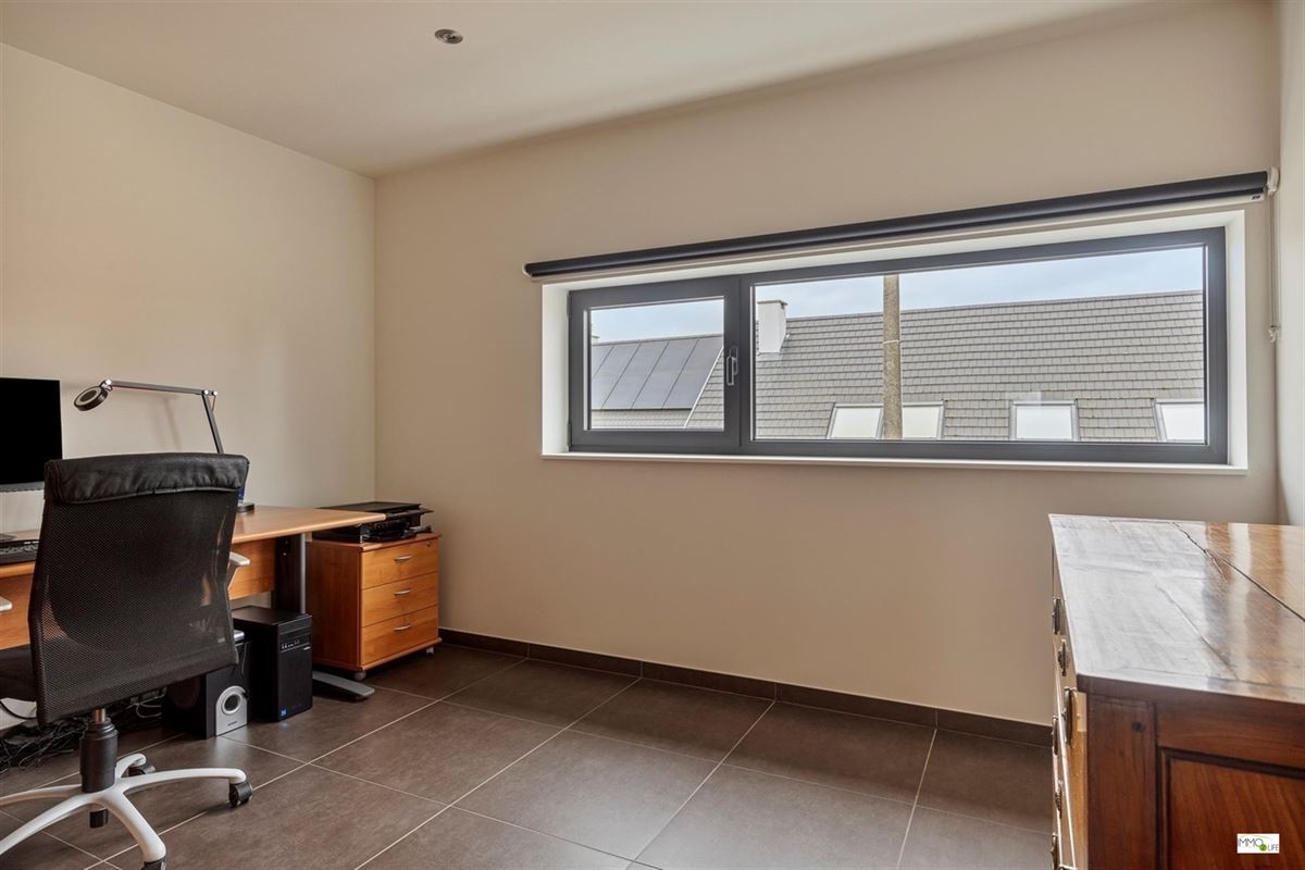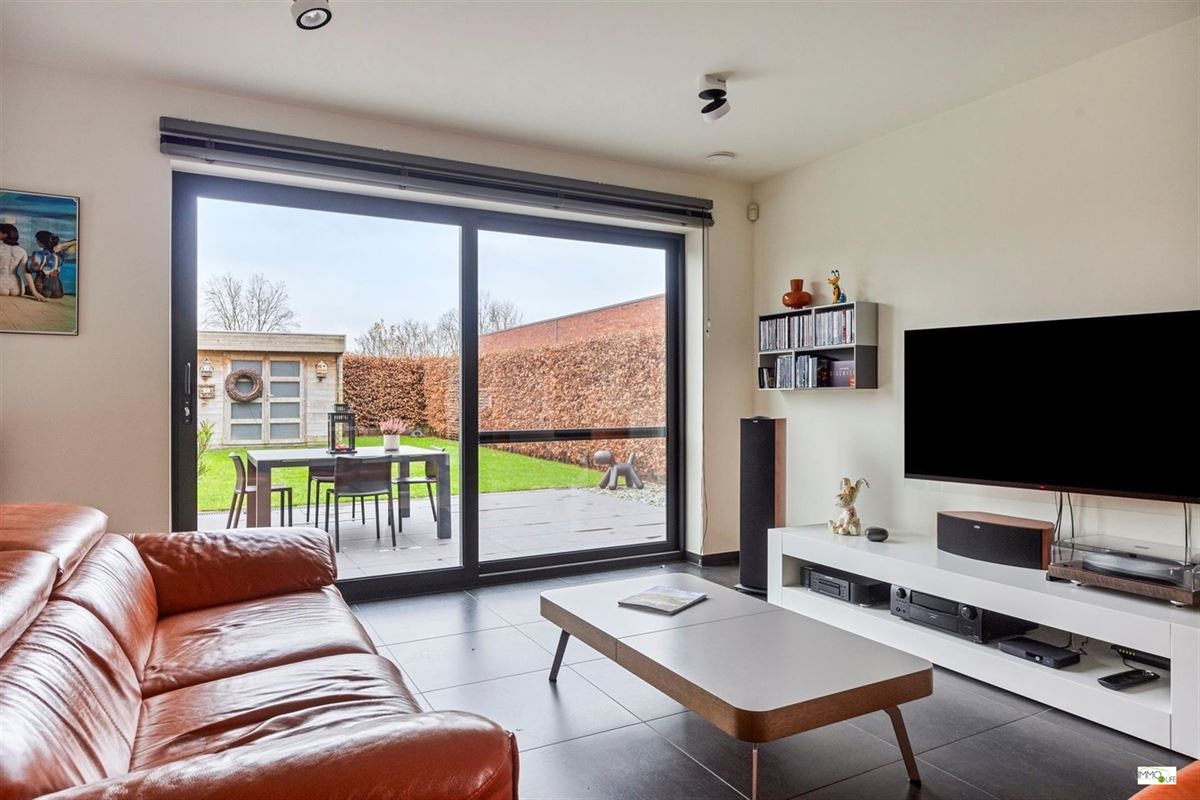 De indeling is als volgt: inkomhal met apart toilet, lichtrijke woon- en eetkamer (32,9m²) met toegang tot het terras en de tuin, ingerichte open keuken (18,8m²) met kwaliteitsvolle toestellen en toegang tot het terras en de tuin, en inpandige garage (22,7m²). Op de 1ste verdieping bevindt zich de nachthal, 3 slaapkamers (20m² - 15m² - 12,2m²), linnenkamer/wasplaats (6,5m²) en een ingerichte badkamer (16,5m²) met douche, ligbad, toilet en dubbele wastafel. Buiten bevindt zich het terras met de onderhoudsvriendelijke tuin.