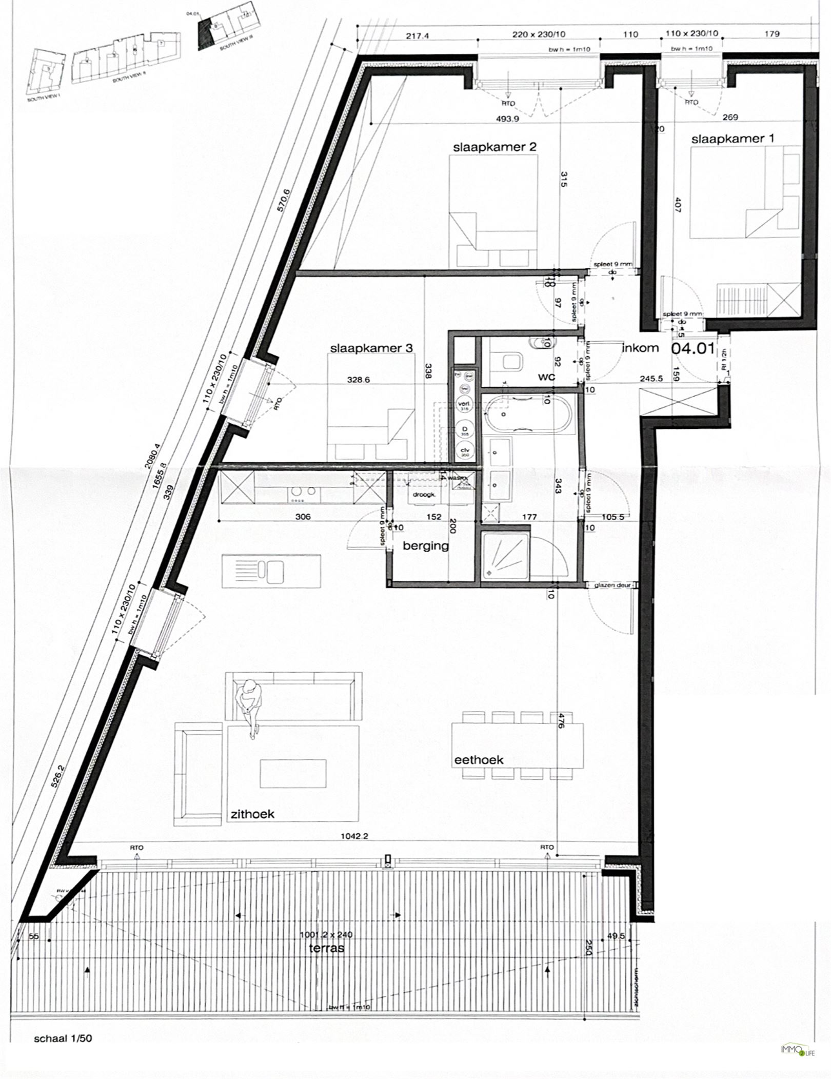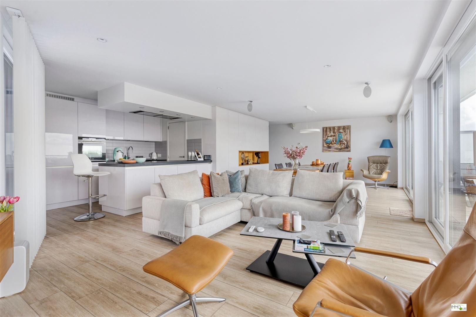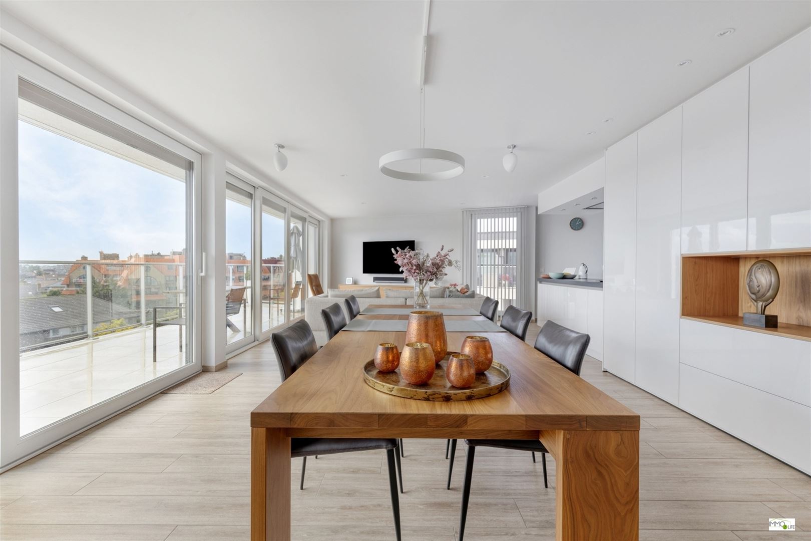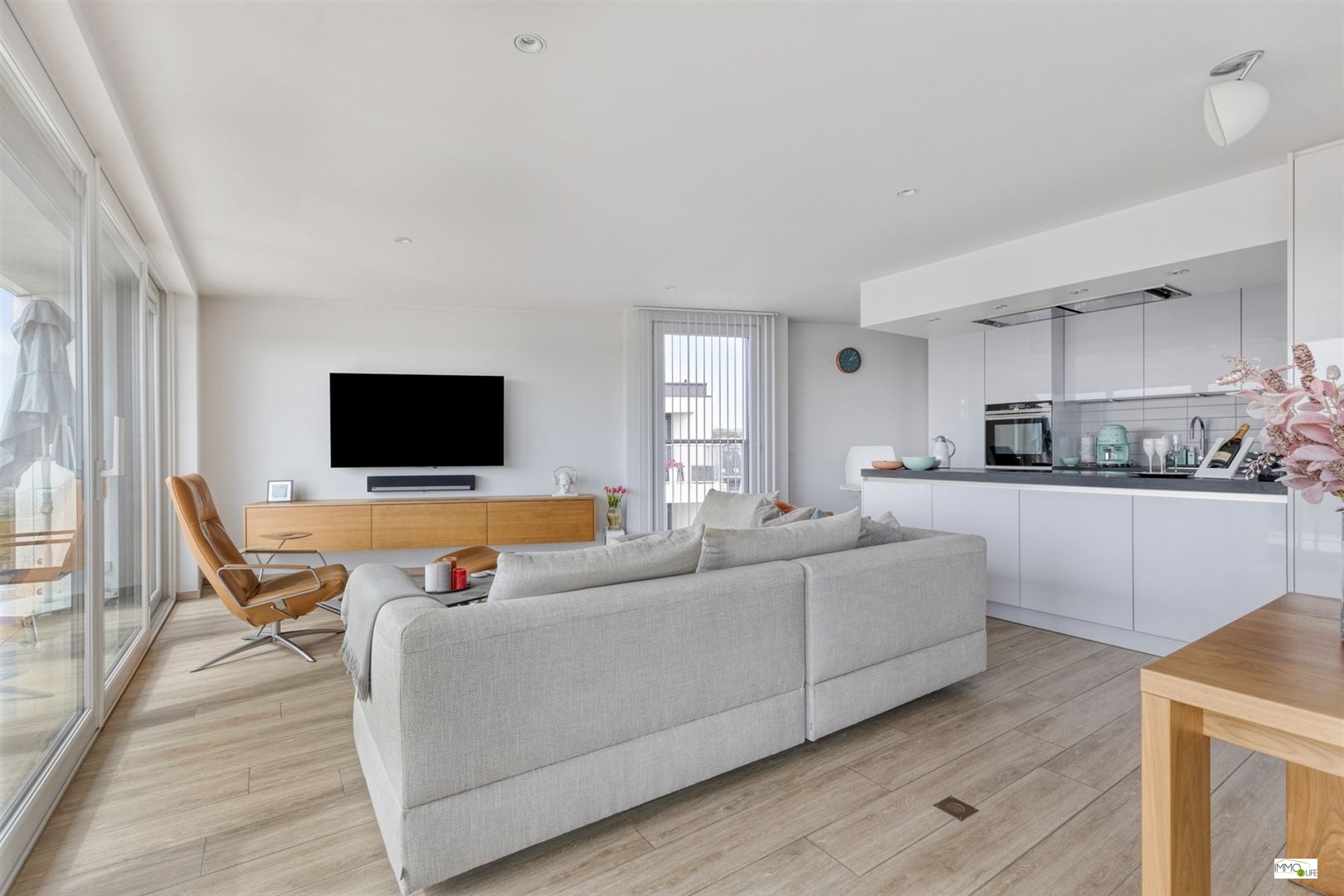Het betreft een stijlvolle en energiezuinige penthouse (123,5 m²) met 3 slaapkamers, garagebox en een royaal terras (25 m²) met een panoramisch uitzicht, gelegen op de 4de verdieping van de residentie 'South View' te Oostende.