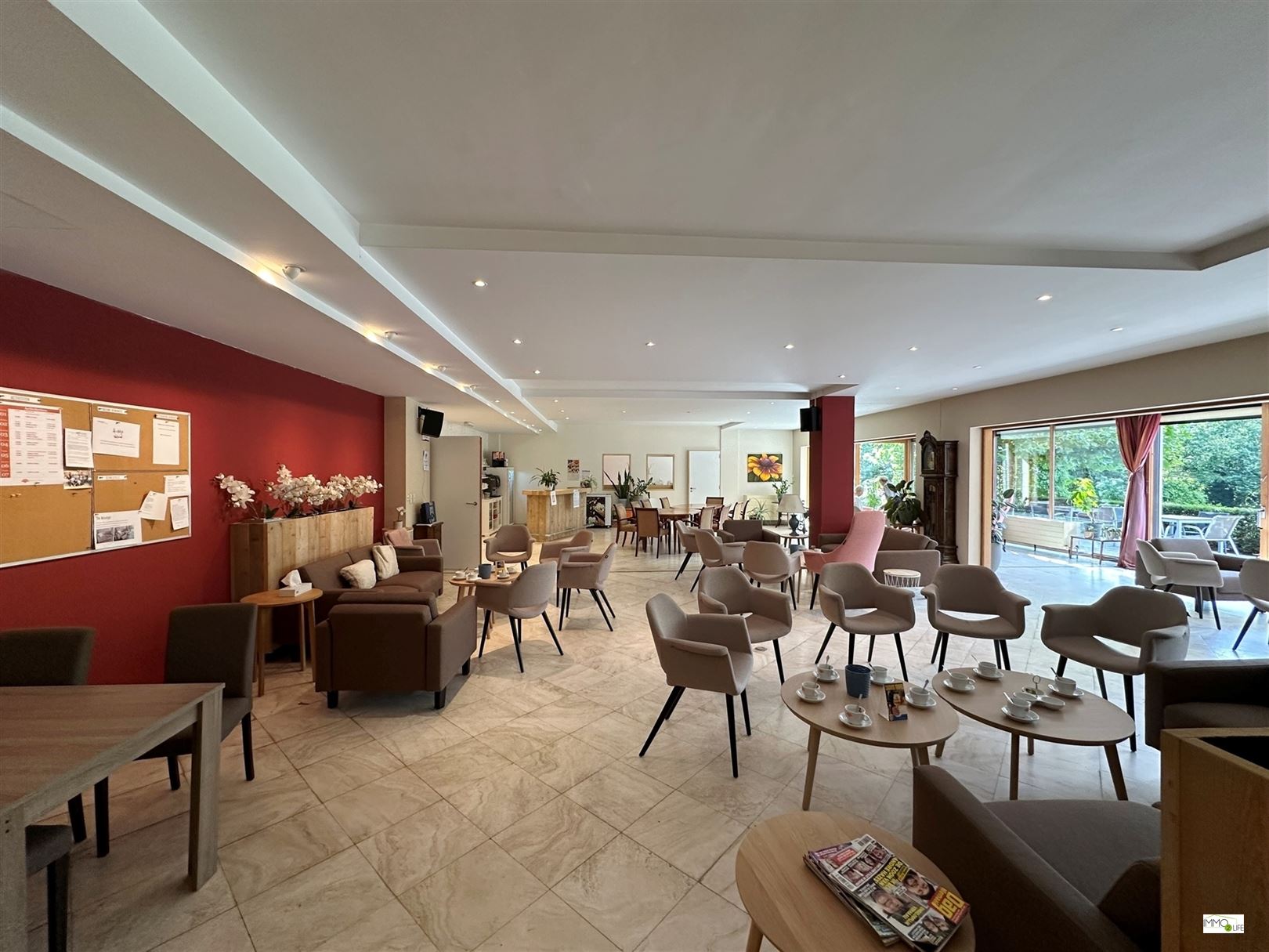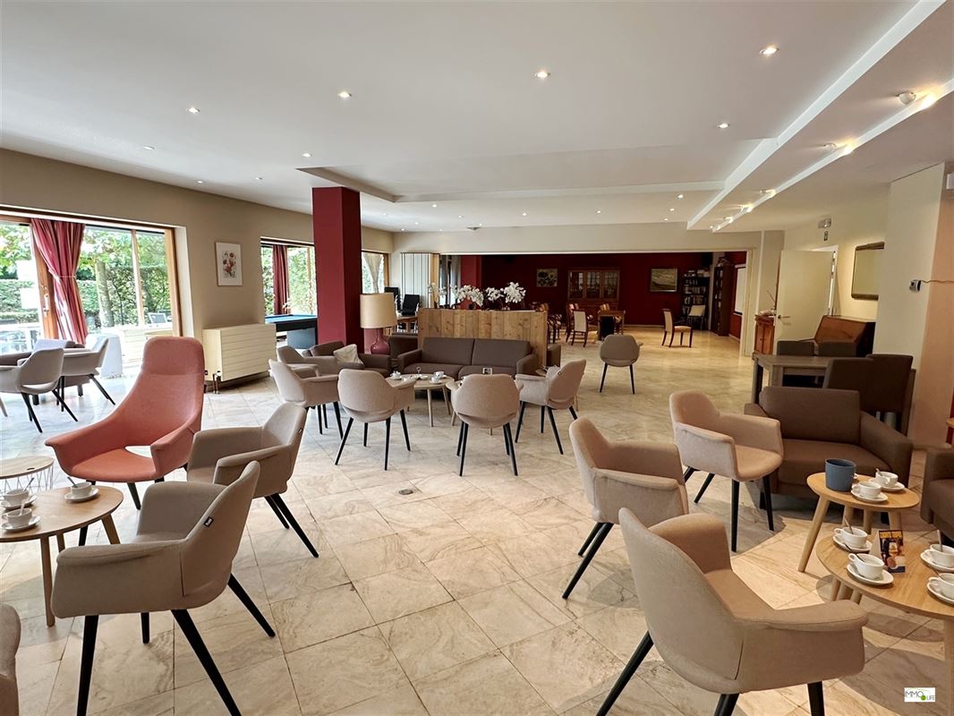 Gelijkvloerse verdieping: onthaal, gemeenschappelijke leefruimte/ontspanningsruimte, kapsalon, winkel, cinemazaal, gemeenschappelijk terras, klusjesdienst,...