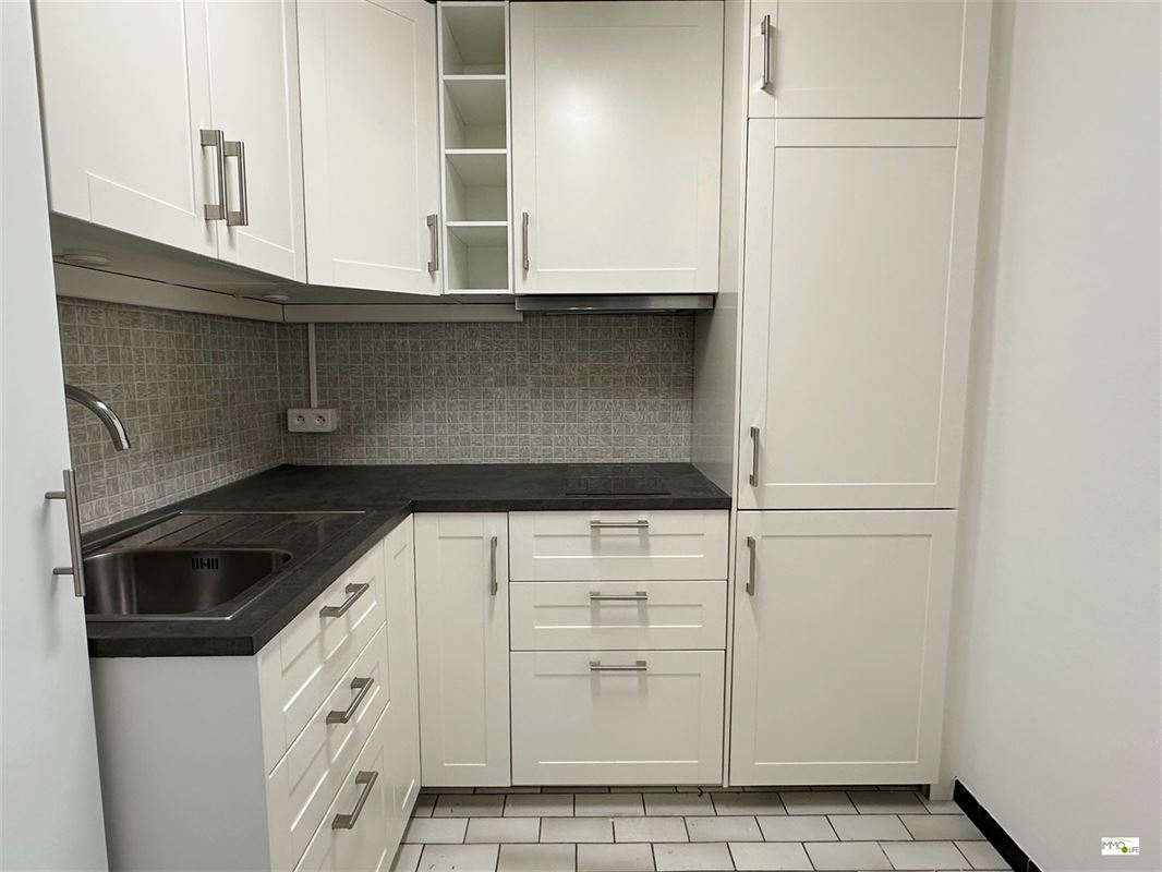 4de verdieping: inkom (3,2 m²), technische ruimte/berging, ingerichte keuken (5 m²), lichtrijke woonkamer (17 m²), ruime slaapkamer (12,7 m²), ingerichte badkamer (7,9 m²) voorzien van wastafel, toilet en inloopdouche, ruim en zongericht terras (6,3 m²) bereikbaar via de woonkamer en de slaapkamer.