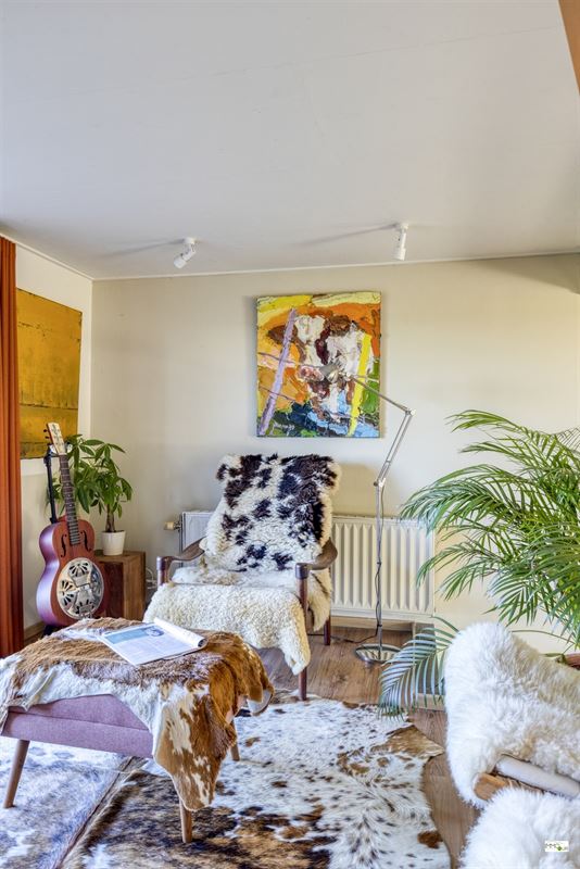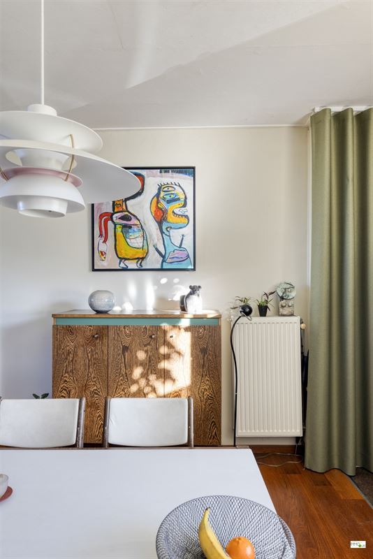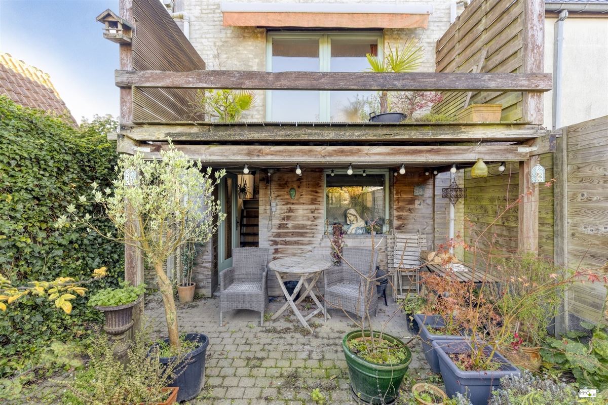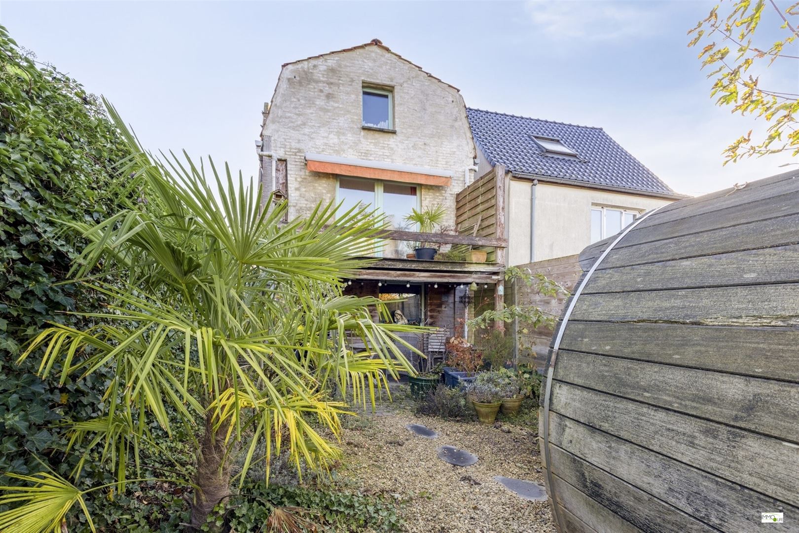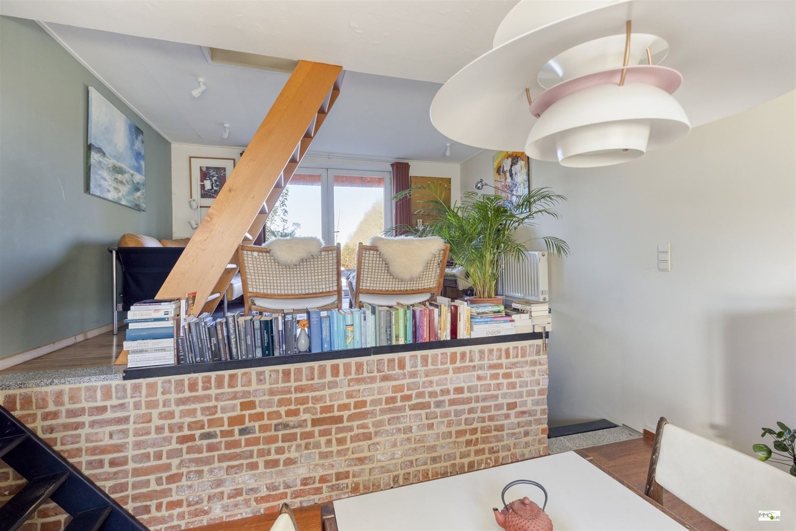 Achter de authentieke bakstenen voorgevel schuilt een gezellige leefruimte met open keuken en eetplaats. Op de tussenverdieping bevindt zich een sfeervolle zithoek met toegang tot het terras. Via een trap naar beneden bereikt u de badkamer (met inloopdouche, toilet en enkele wastafel), de tuin met overdekt terras en een praktische kelderruimte. De 2 slaapkamers bevinden zich op de 1ste verdieping.