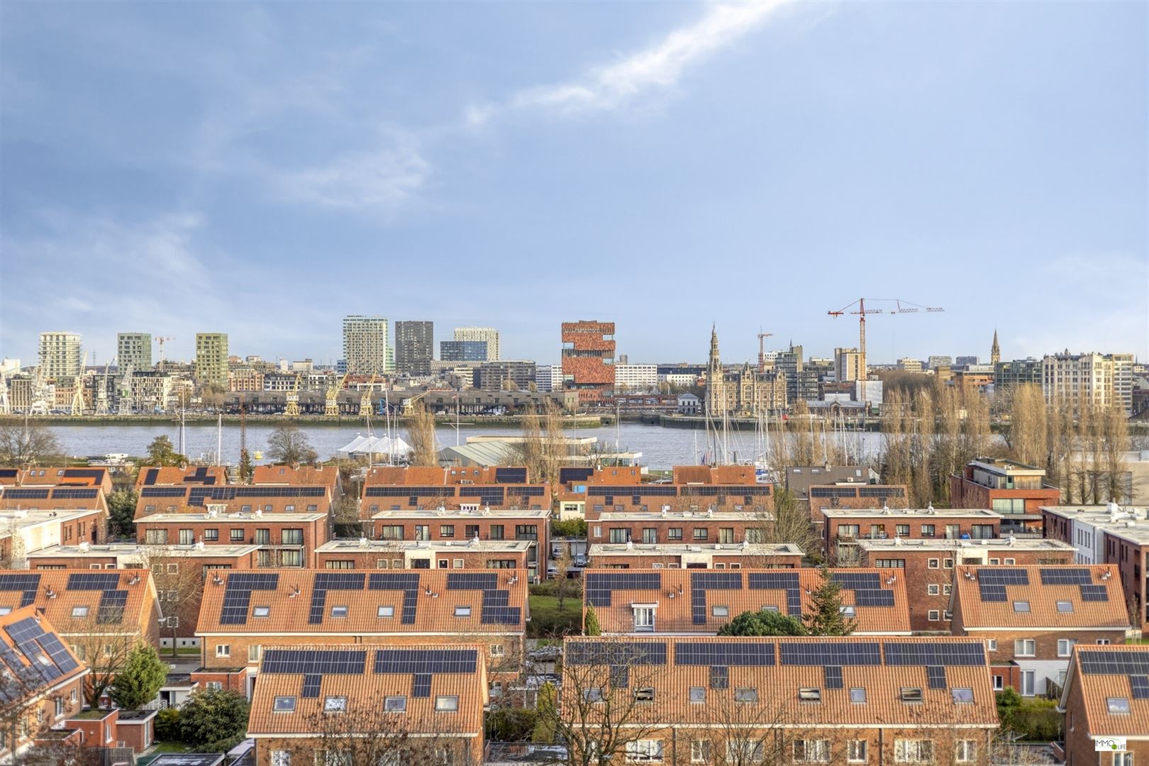 Het betreft een hedendaags en lichtrijk 2-slaapkamerappartement (88 m²) met 2 terrassen en 2 autostaanplaatsen, gelegen op de 10de verdieping in de residentie "Brabo II" te Linkeroever, met een uniek vergezicht over Antwerpen en de jachthaven. Het appartementsgebouw is rustig gelegen en vlot bereikbaar (mobiscore 8,9/10) via de nabijgelegen verbindingswegen (E34, E17, N49a). In de directe omgeving is er een groot aanbod aan winkels, openbaar vervoer en eetgelegenheden.
