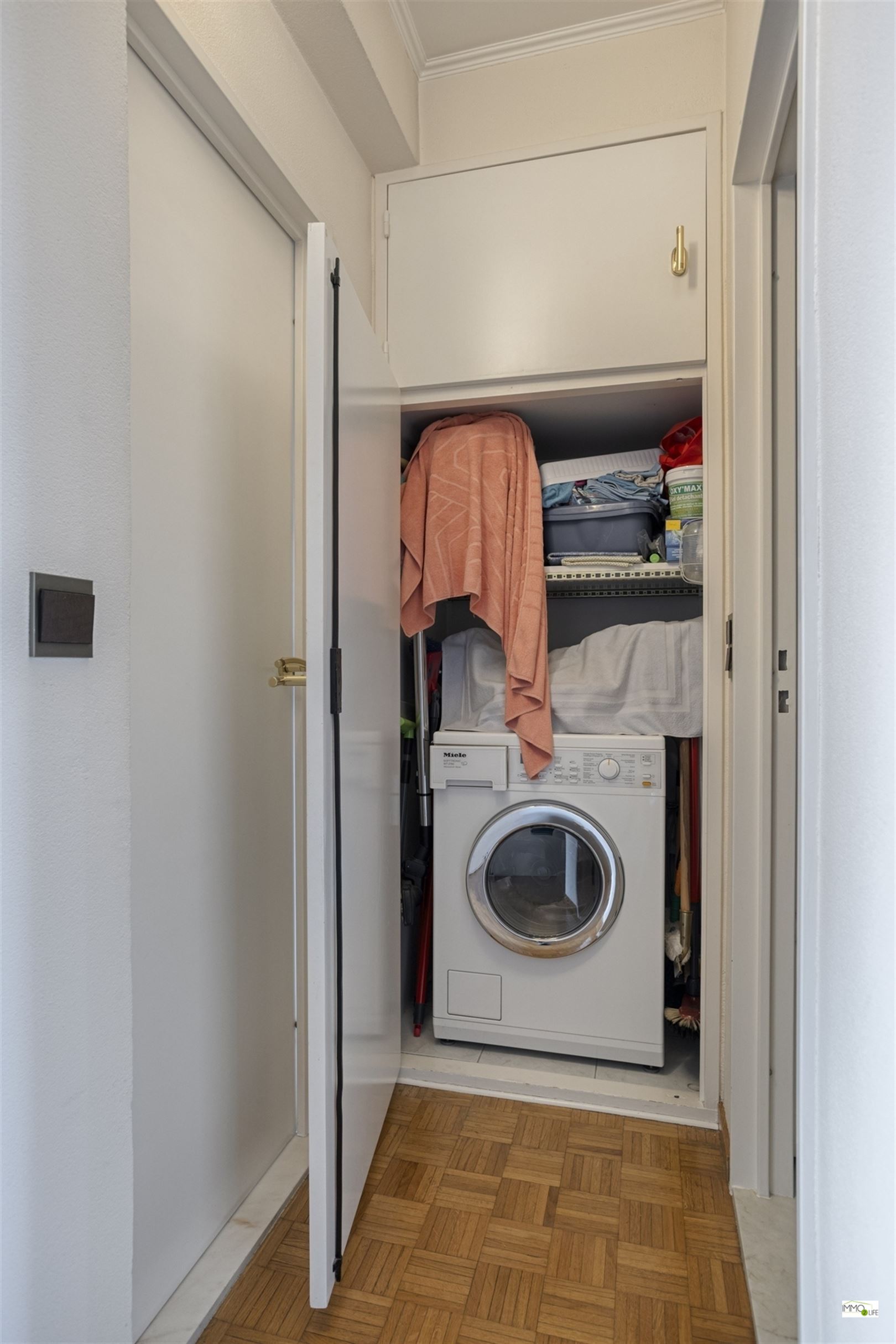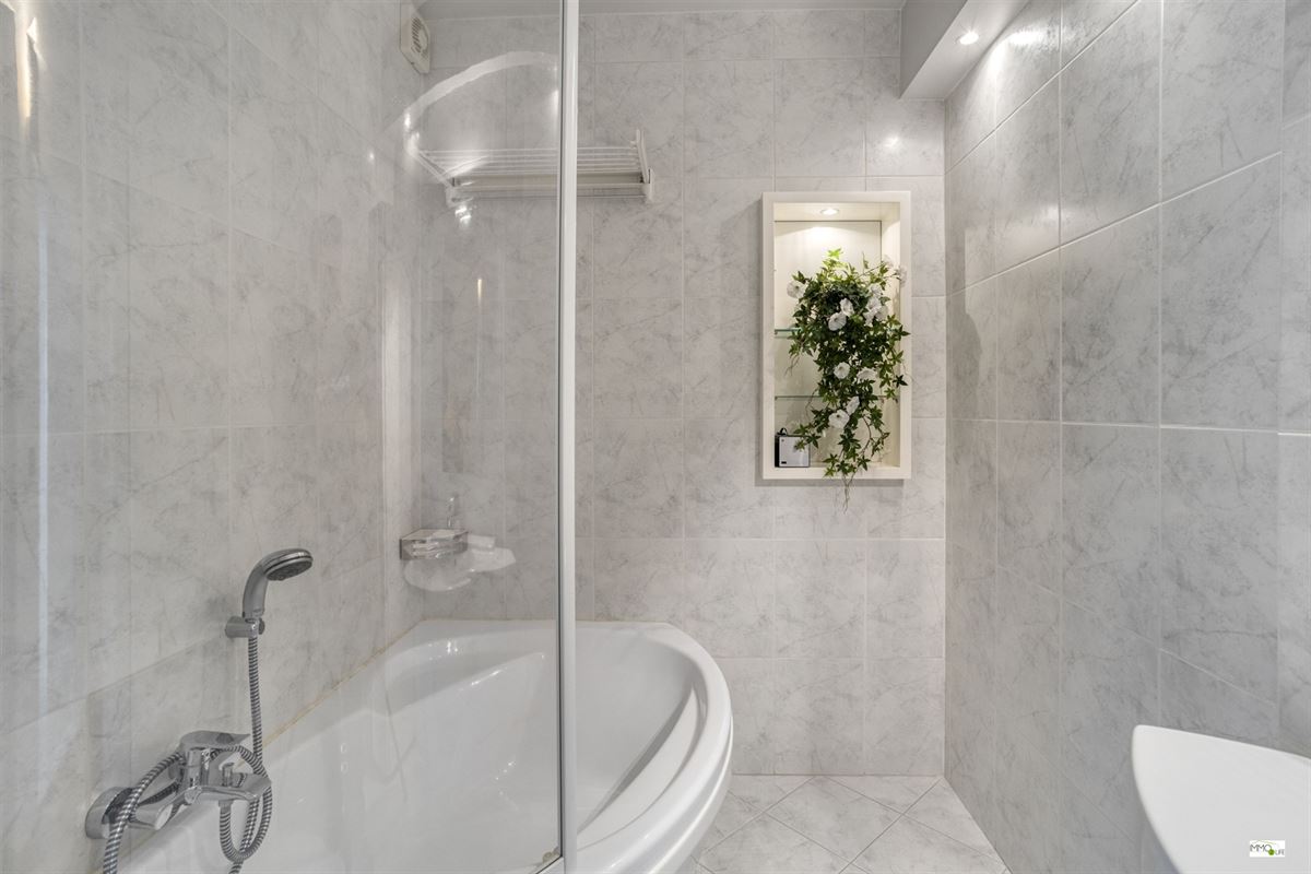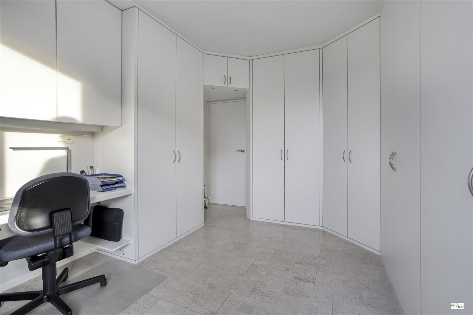 De indeling is als volgt: inkomhal (6,7 m²) met ingebouwde vestiairekast, apart toilet, lichtrijke woon- en eetkamer (29,2 m²), ingerichte keuken (8,7 m²) met toegang tot het 1ste terras (3,4 m²) met prachtig uitzicht over Antwerpen, nachthal, ingerichte badkamer (6,7 m²) met ligbad (met douchefunctie) en wastafel, aparte inbouwkast (met voorziening voor wasmachine) en 2 slaapkamers (15,8 m² en 9,8 m²), waarvan 1 met toegang tot het 2de terras en beiden voorzien van kwalitatieve inbouwkasten. Op de gelijkvloerse verdieping bevinden zich 2 gemeenschappelijke fietsenbergingen (1 binnen en 1 buiten). Er zijn eveneens 2 privatieve autostaanplaatsen voorzien in een parkeergarage vlak naast het appartementsgebouw.
