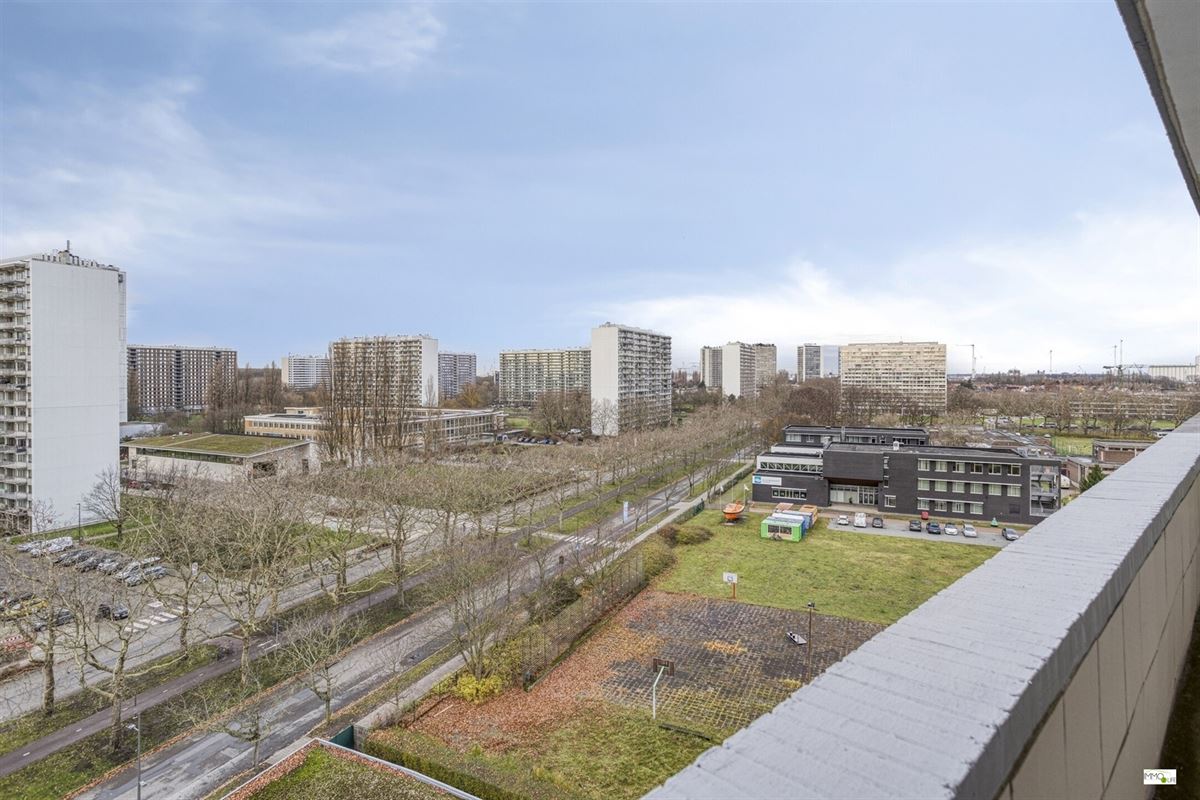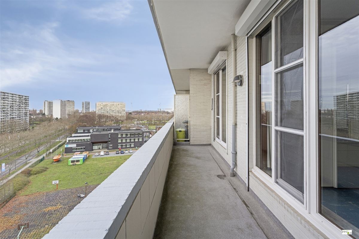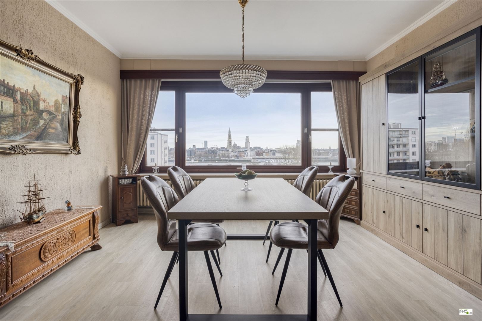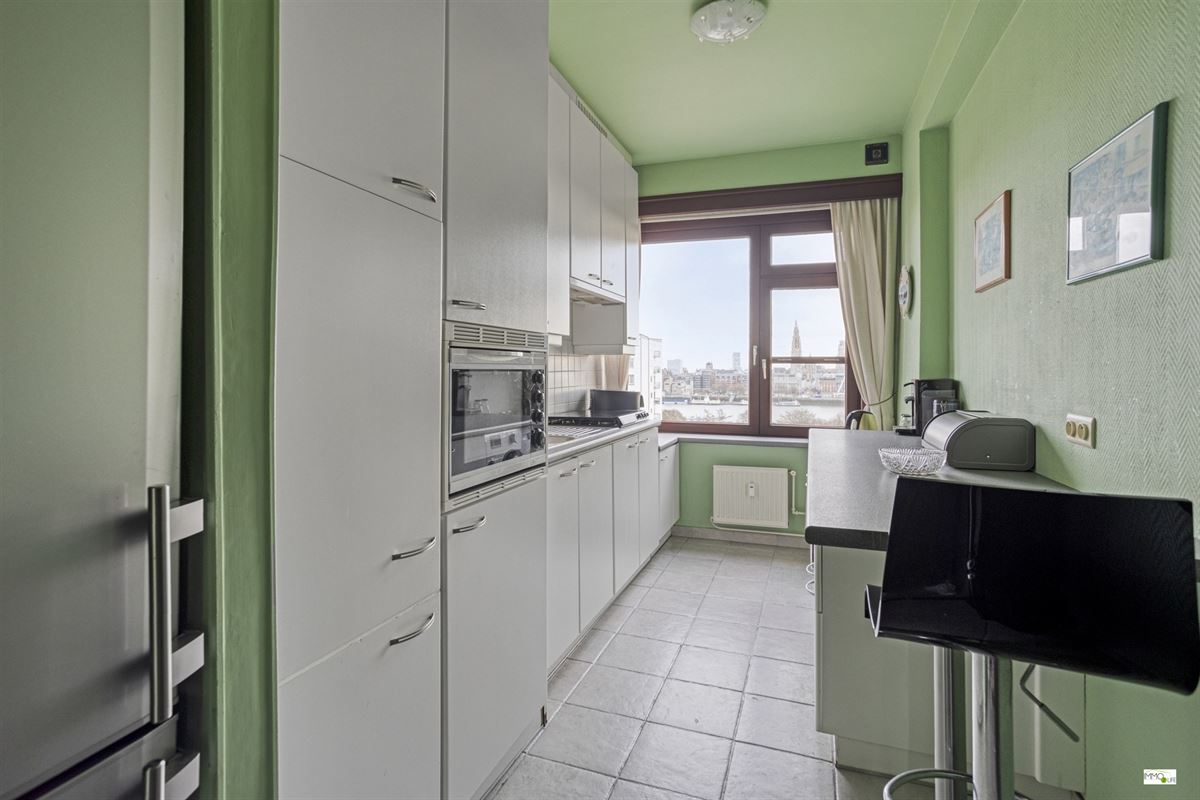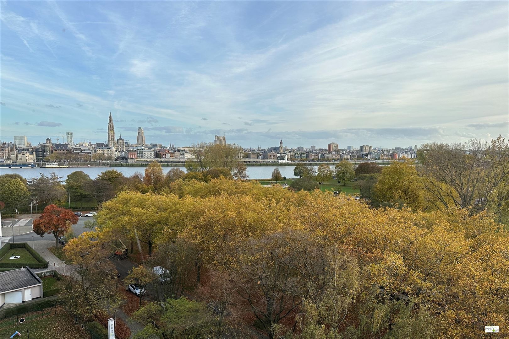 De indeling is als volgt: inkomhal met ingebouwde vestiairekast, apart toilet, lichtrijke woon- en eetkamer met prachtig uitzicht over Antwerpen, ingerichte keuken, nachthal, ingerichte badkamer met douchecabine en wastafel, aparte berging en 2 slaapkamers, beiden met toegang tot het terras. Het appartementsgebouw beschikt over een gemeenschappelijke fietsenberging en daarnaast zijn er 2 kelderbergingen en een overdekte privatieve autostaanplaats inbegrepen.