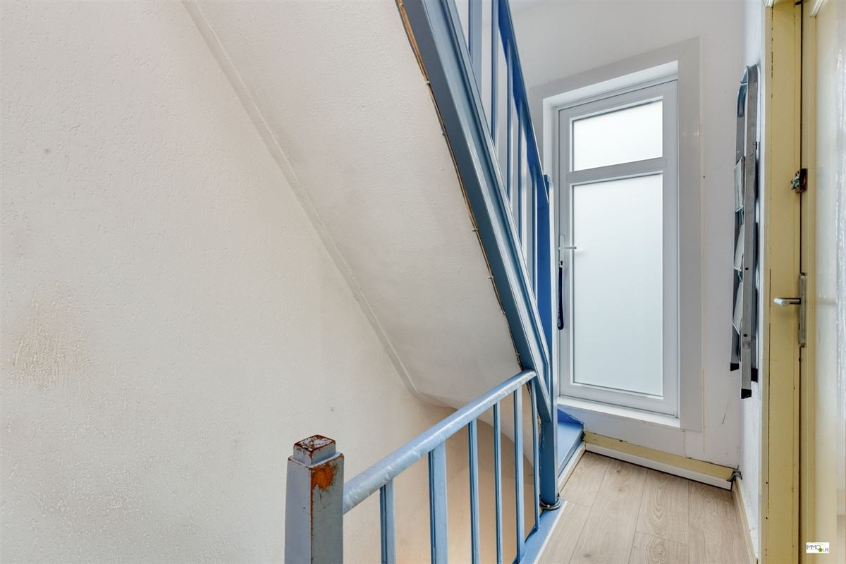 1ste verdieping: nachthal, 2 ruime slaapkamers, waarvan 1 met een ingebouwde kast, en toegang tot een gezellig dakterras aan de straatzijde.