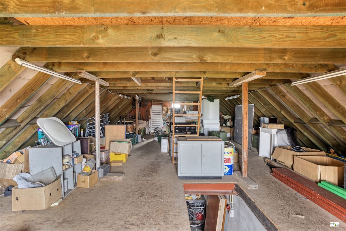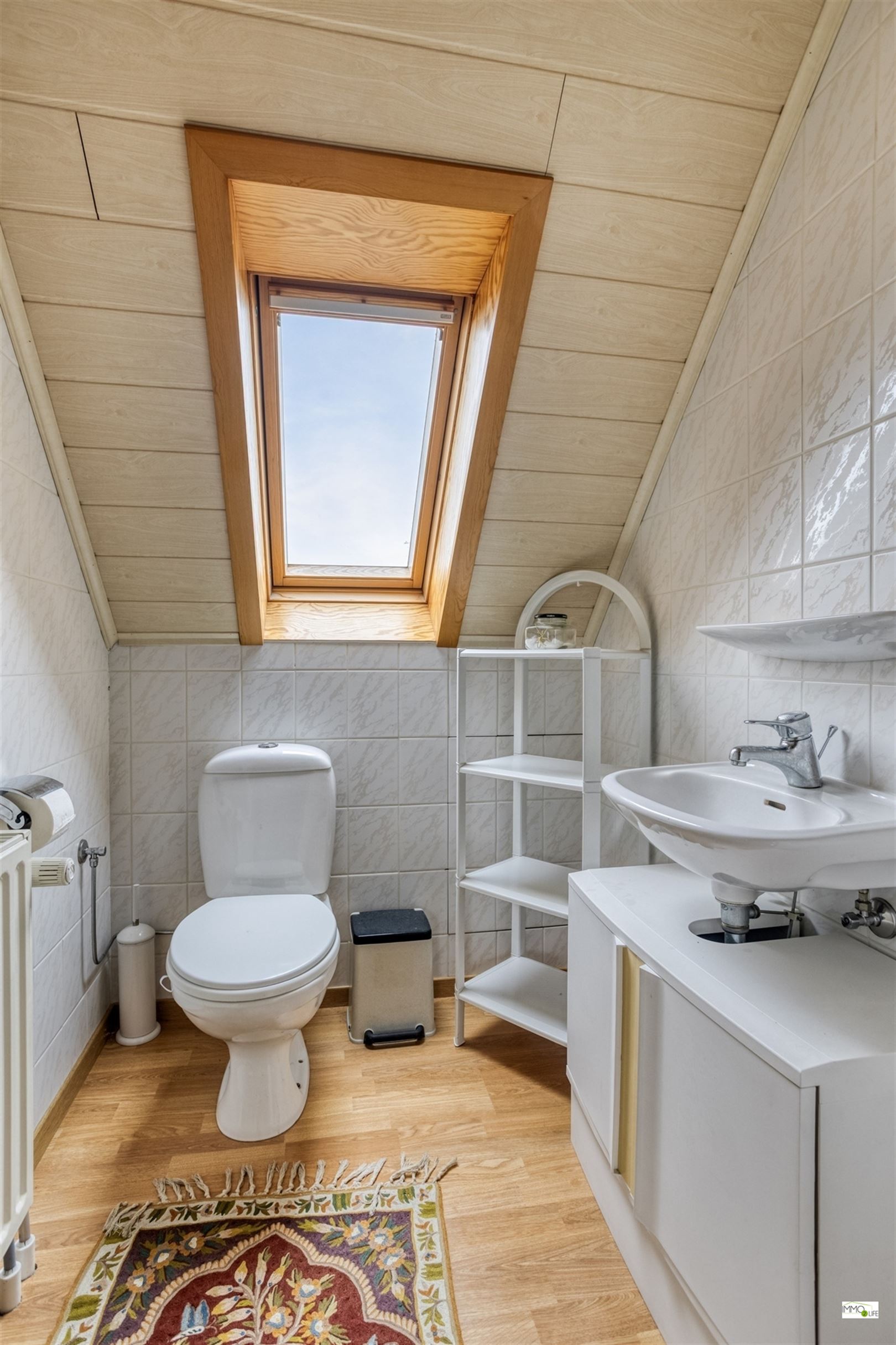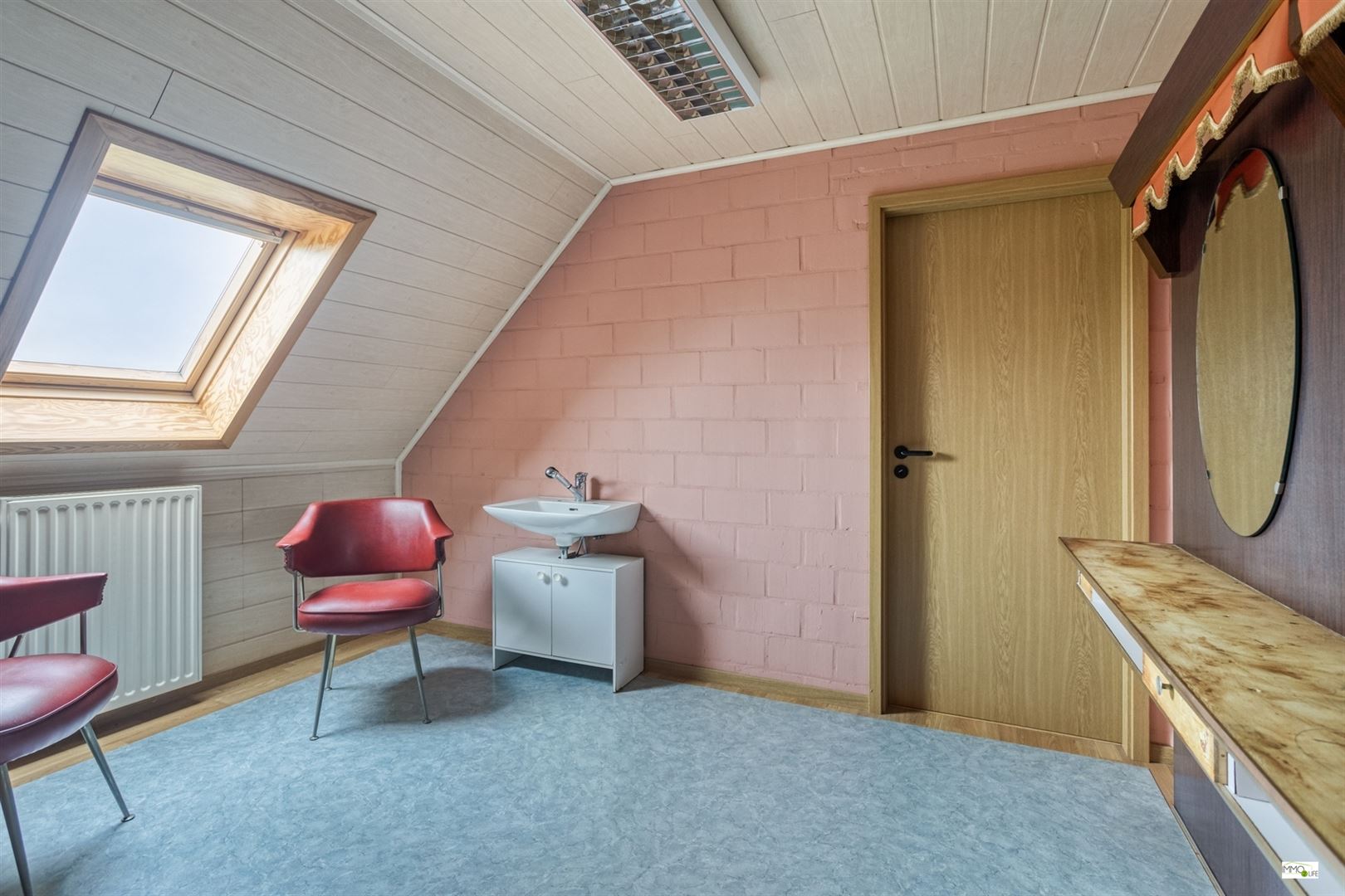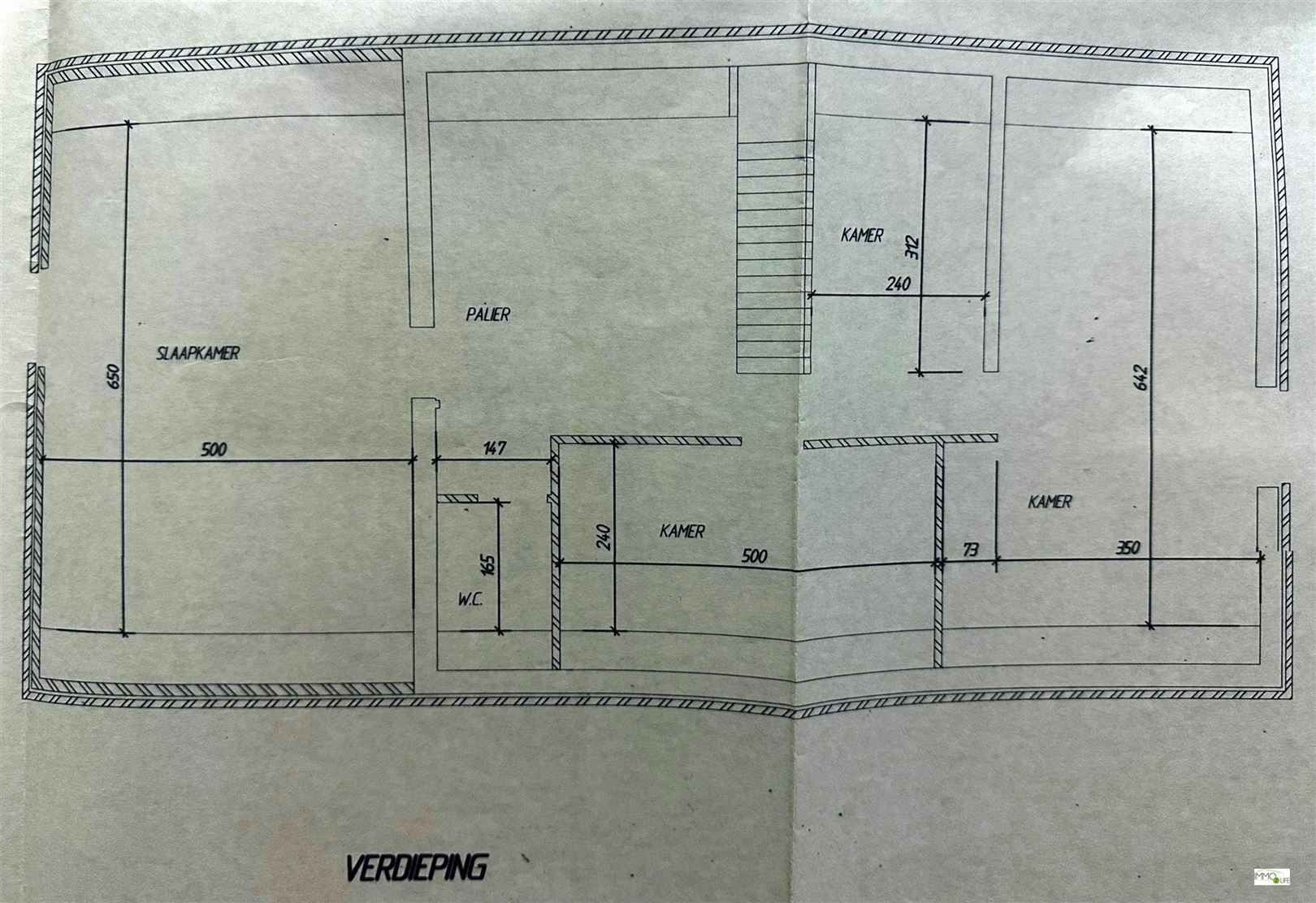 1ste verdieping: ruime overloop, 3 slaapkamers (32,5 m² - 12 m² - 7,5 m²) waarvan de grootste nog kan worden opgedeeld, apart toilet, ruime berging (22,5 m²) met trapluik naar de dakverdieping waar nog een zolderberging aanwezig is over de volledige oppervlakte van de woning.