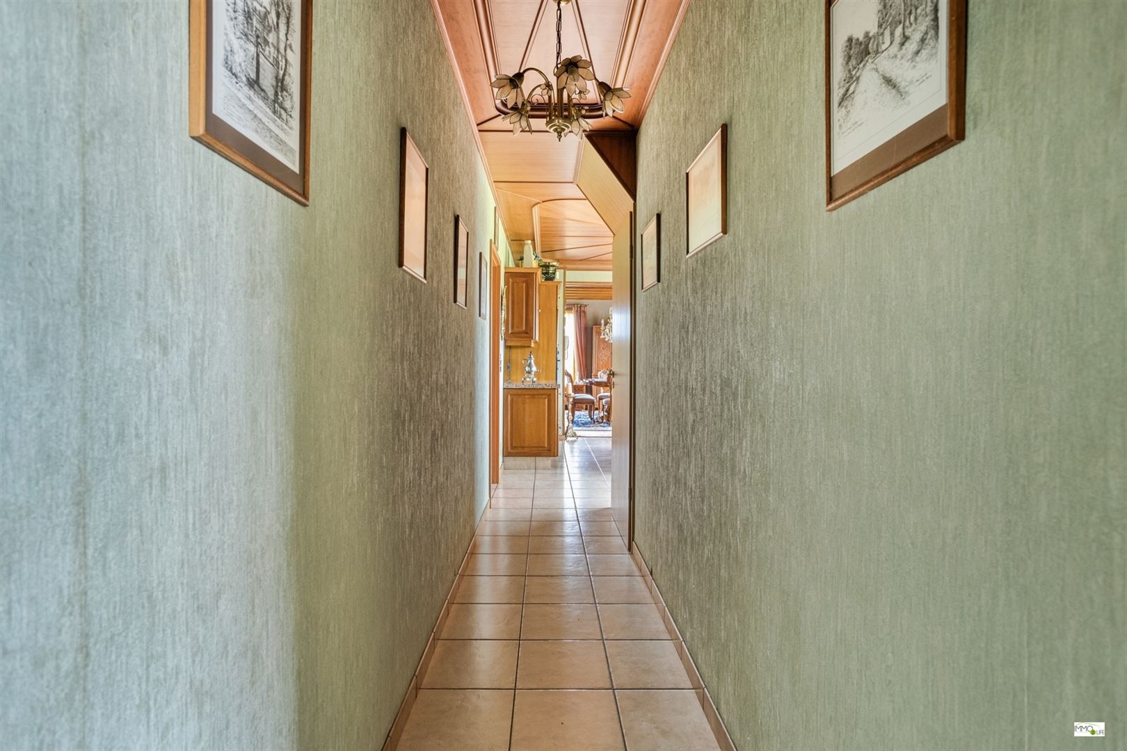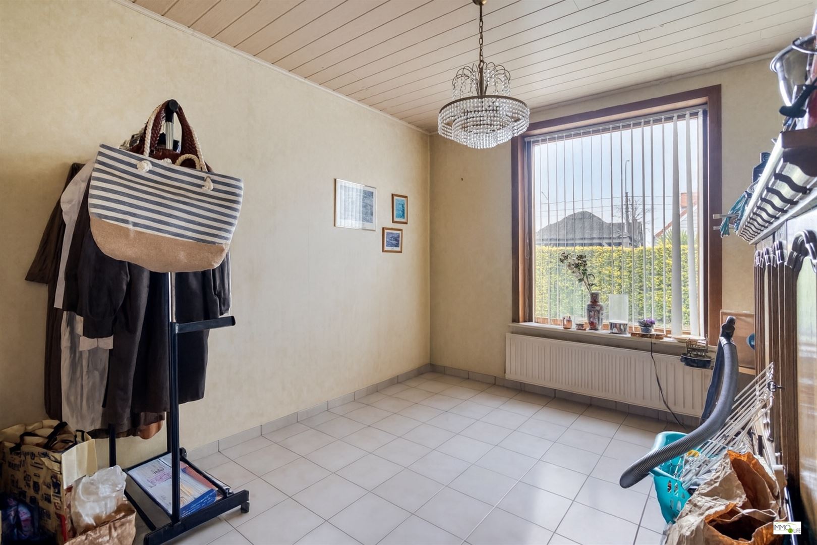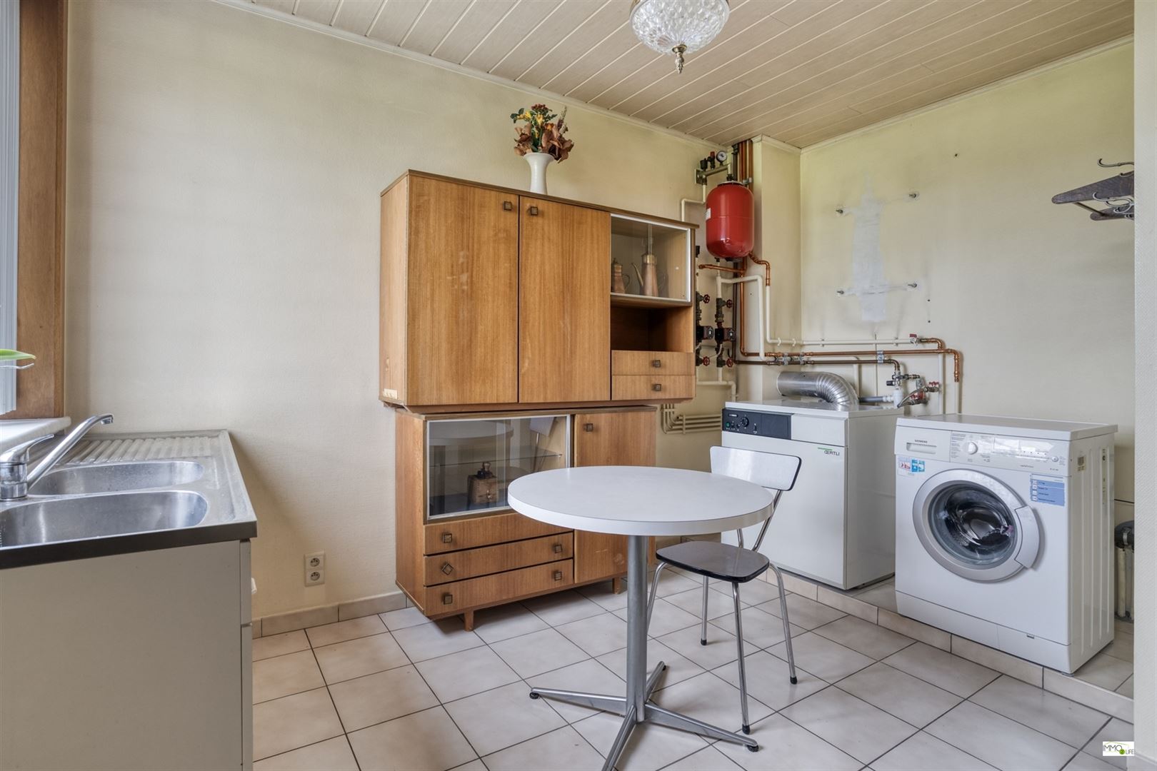 Gelijkvloers: inkomhal (8,5 m²) met apart gastentoilet, ruime woon- en eetkamer (39 m²) met toegang naar het westgeoriënteerde overdekte terras, ingerichte keuken (13,7 m²), kelder, nachthal, 2 slaapkamers (13,1 m² - 12,6 m²), wasruimte (12,5 m²) met toegang naar het overdekte terras en de tuin, badkamer op de tussenverdieping (met douche, ligbad en dubbele wastafel).