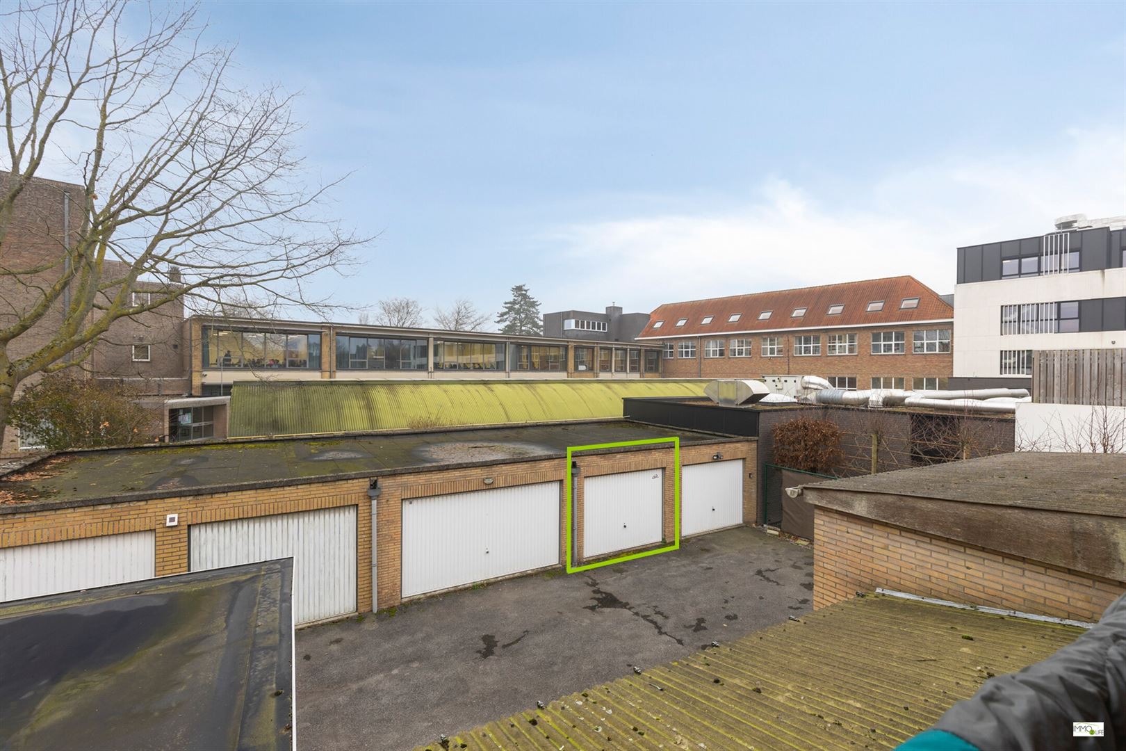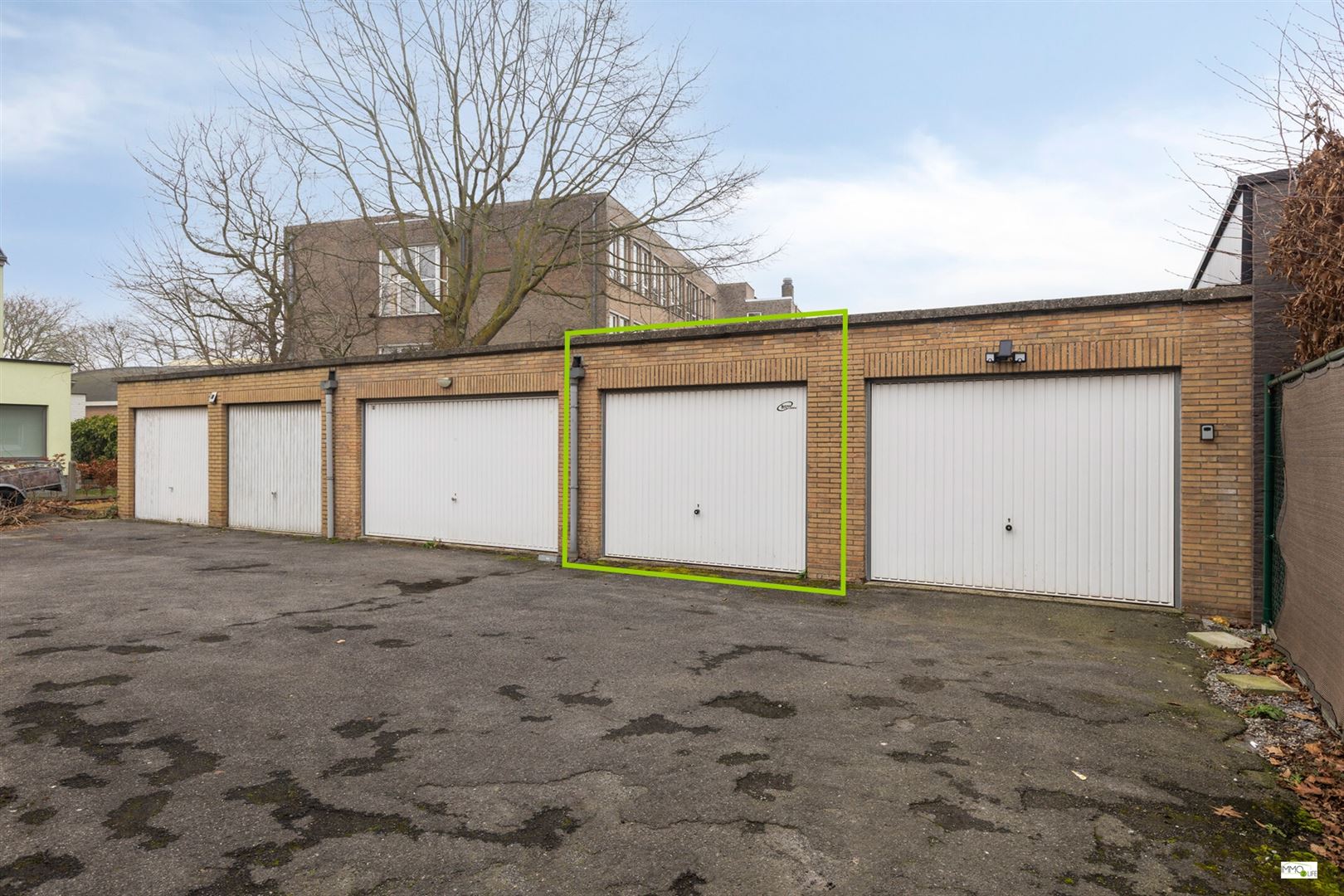 De afgesloten privatieve garagebox (vraagprijs = 25.000 EURO) achteraan het appartementsgebouw is gemakkelijk bereikbaar via de gemeenschappelijke oprijlaan en voorzien van elektriciteit (licht en contactdoos).